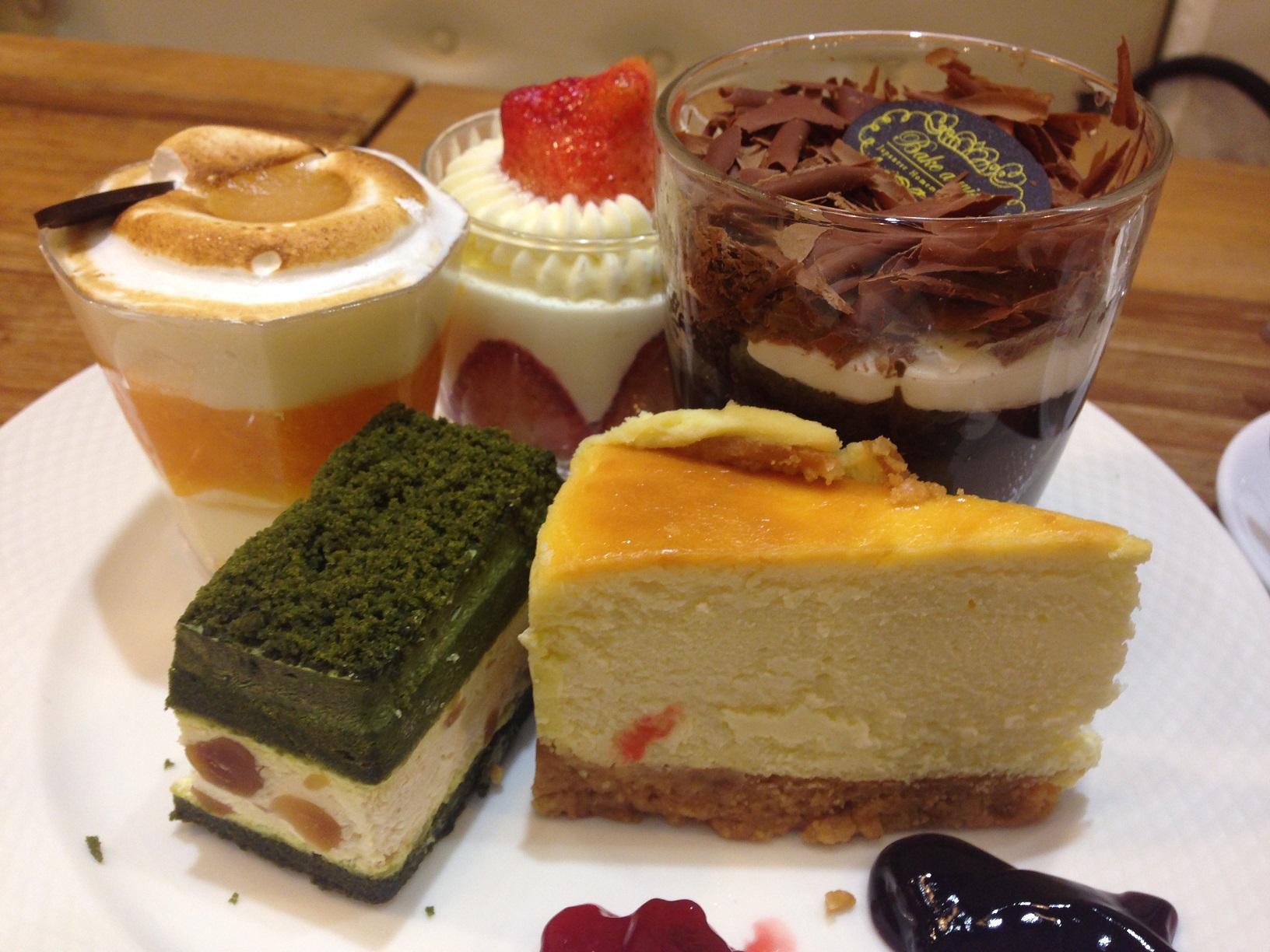 ซ้ายล่าง - MAD MAX อันนี้ไม่มีในใบสั่งต้องเขียนสั่งเองนะครับ เค้กรสชาเขียวอ่อนๆซึ่งโดนกลบด้วยตัวครีมตรงกลาง แทรกด้วยแมคคาเดเมีย