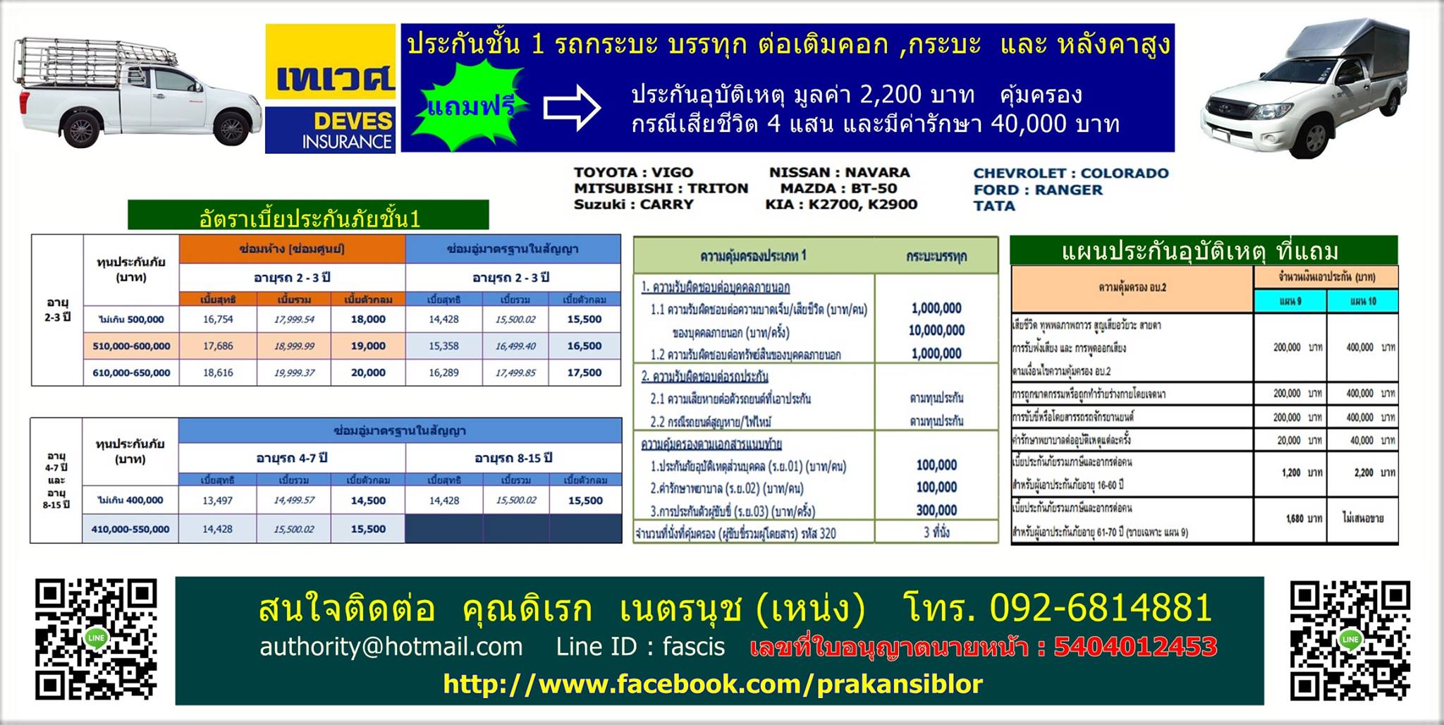 สนใจติดต่อได้เลยนะครับ มีทุกบริษัทให้เลือกทั้ง วิริยะ คุ้มภัย เจ้าพระยา MSIG กรุงเทพประกันภัย นำสิน สินมั่นคง แอ๊กซ่า อาคเนย์ LMG เป็นต้น