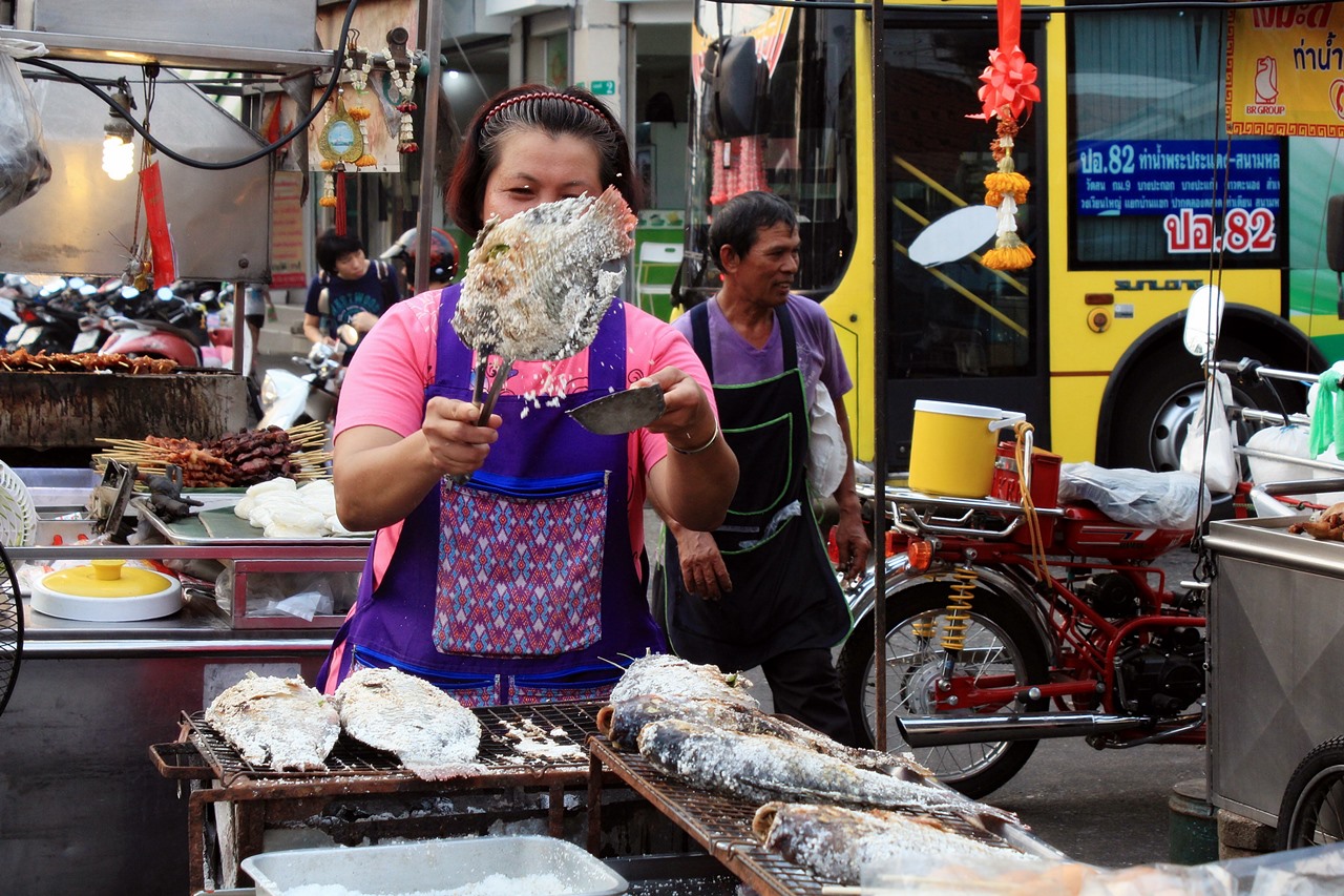 จาก: ร้านปลาเผา ตลาดพระประแดง (พี่แม่ค้ากวักมือเรียก แล้วโชว์ท่าพลิกปลาขั้นสูง ให้เราแชะโดยเฉพาะ)