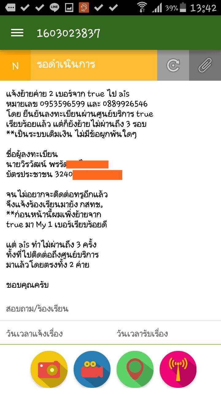 จนตอนนี้ผมเหลืออด และแจ้งร้องเรียนไปทาง กสทช. เรื่องที่ทรูไม่ยอมย้ายค่ายให้