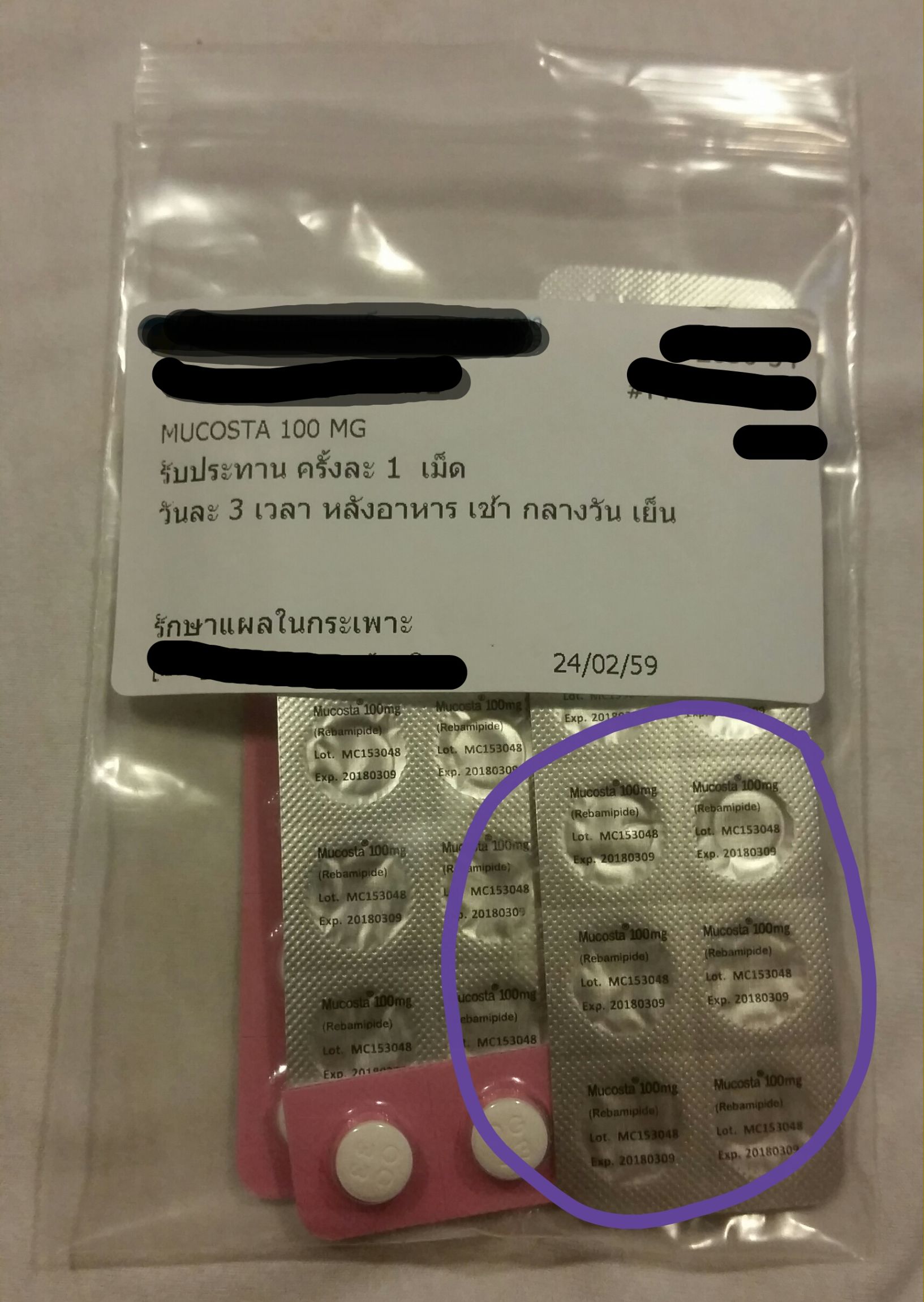 คุณหมอก็ได้สั่งจ่ายยามาหลายชนิด แต่มีชนิดหนึ่ง ที่หน้าซองจ่ายเป็น MUCOSTA 100MG. เป็นยารักษาแผลในกระเพาะ