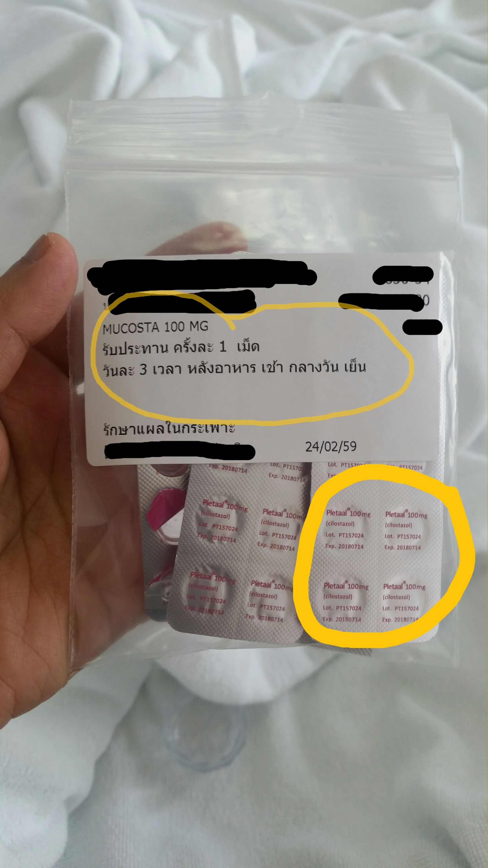 กินวันละ 3ครั้งหลังอาหาร แต่ตัวยาข้างในกลับเป็น PLETAAL (cilostazol)  100 MG. ซึ่งยาชนิดนี้ไม่ได้มีความใกล้เคียงกับยากระเพาะแม้แต่น้อย ไม่เข้าใจว่าทำไมถึงจ่ายยาผิดได้   เรากินเกินจำนวนด้วยเพราะกินตามหน้าซองไป  และยาค่อนข้างอันตรายสำหรับเรา