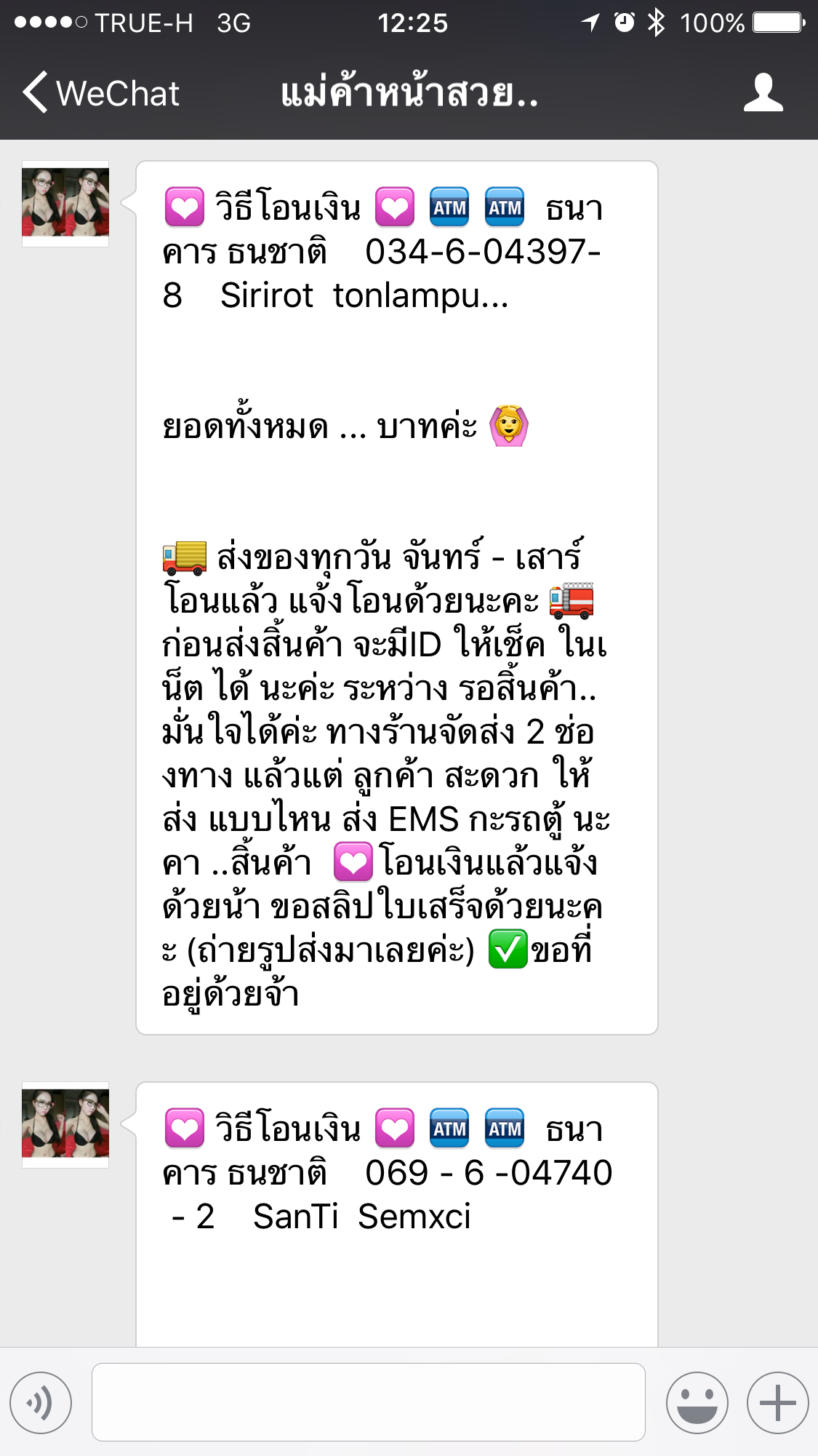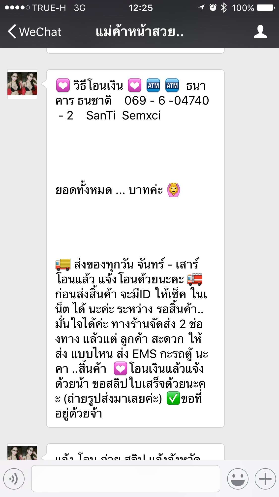 ผมได้ทำการติดต่อซื้อโทรศัพท์มือถือกับ wechat ID: meen2530 โดย meen2530 ได้ใช้รูปผญซึงเป็นผู้รวมแกงค์ในการติดต่อกับผม