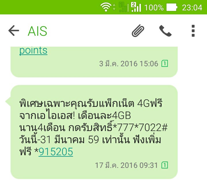 มีใครได้รับ SMS จาก AIS ฟรีใช้เน็ท 4G / 4 GB นาน 4 เดือน บ้างครับ