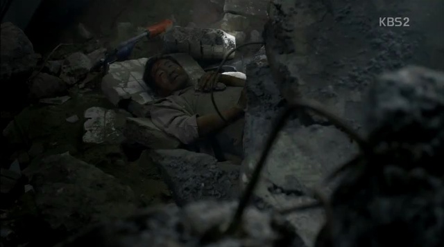 ดูจากสภาพถามว่าใครจะรอด ระหว่างลุงผจก.ที่ถูกซากคอนกรีตทับส่วนล่างกับคนงานอีกคนที่ถูกแท่งเหล็กเสียบคาอกจะพูดแต่ละทีคนดูเสียวแทน . . คนธรรมดาที่ดูซีรีย์ไปวันๆอย่างเราต้องคิดแหละว่าลุงที่ยังพูดได้อาการเบากว่าน่าจะรอด . . บอกเลยมันง่ายไป