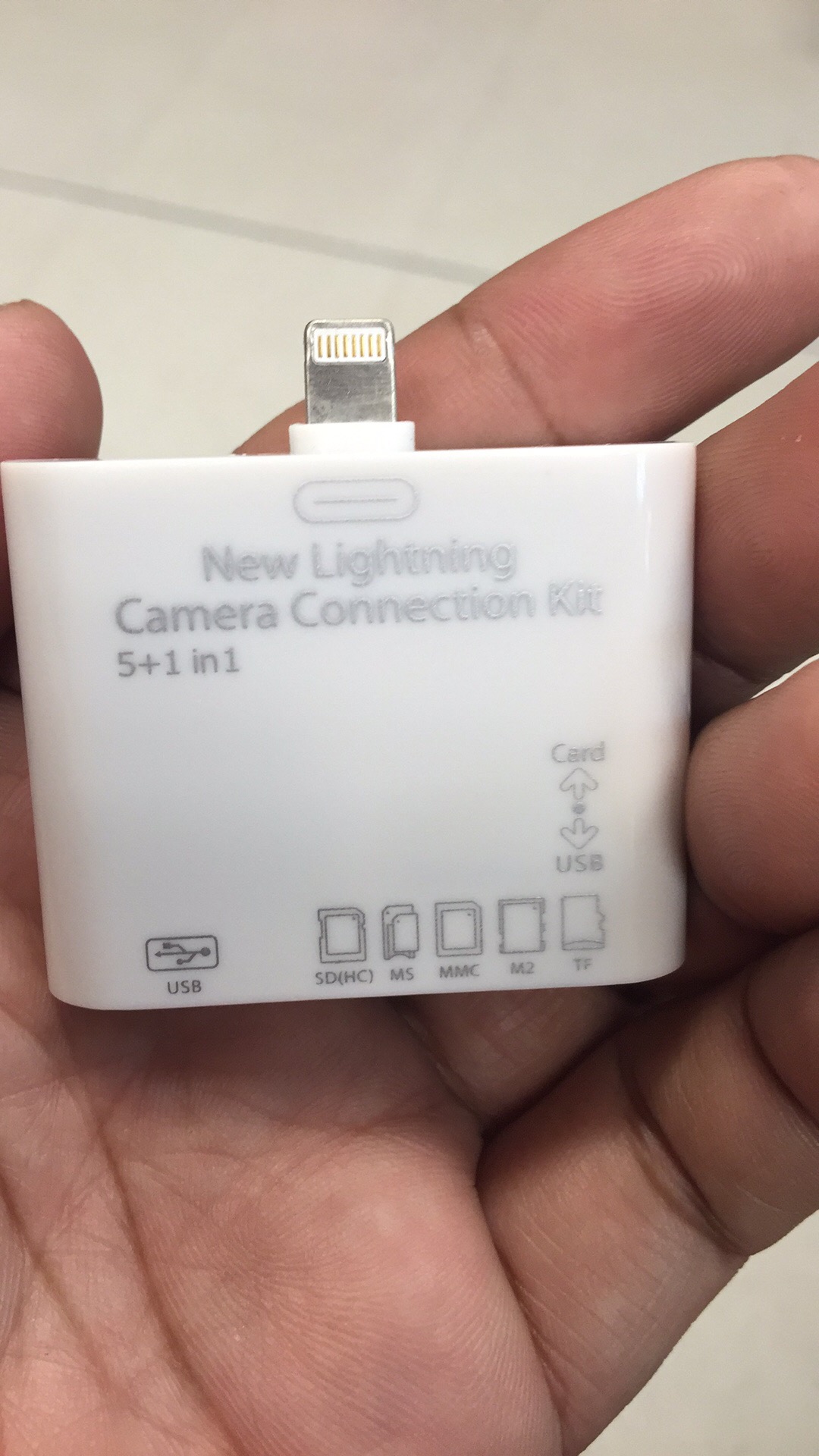 พอดีเมื่อวานไปเดิน commart ไปเห็นเจ้าตัว camera connecion kit 5 in 1 ขายแบบโละทิ้ง 3 ตัว 100 ในใจคิดว่ามันจะใช้ได้หรอวะ ถูกจัง ลองซื้อมาลองตัวหนึ่ง ขาย 40 บาท ใช่ไม่ได้ก็โยนทิ้ง ซื้อเสร็จลองเสียบ ขึ้นข้อความว่าอุปกรณ์ ตัวนี้ไม่ลองรับ คิดในใจสงสัยใช้ไม่ได้จริง ตอนนั้นไม่มีเมมจากกล้อง มาถึงบ้านลองถ่ายรูปจากกล้องดู แล้วเอามาเสียบใหม่ ก็ยังขึ้นแจ้งอุปกรณ์ไม่ลองรับ แต่ว่ามันใช้ได้แฮะ รูปที่ถ่ายจากกล้องขึ้นมา แล้วเลือกที่จะ ถ่ายโอนจากเมมกล้องเข้ามาที่ เครื่องไอโฟนเราได้จริงๆแหละ เอ่อถือว่าโชคดีมาก เสียดายซื้อมาตัวเดียว ที่อื่นผมเคยเห็นขาย 250 ขึ้นไปนะ ถ้าใครอยากซื้อมาลอง ก็ไปดูที่งานคอมมาร์ค ครับ อยู่โซนที่ขายของเฝแกดเจ็ต ด้านหลังๆเลยครับ อยู่ในกล้อง 3 ชิ้น 100 มีแต่ของไอโฟนครับ ผมใช้ Iphone 6 Plus ใช้ได้ครับ