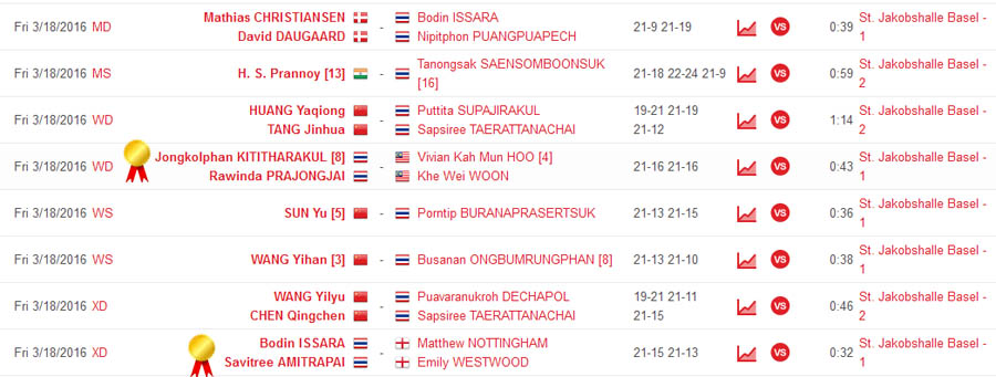 คลิปแบดมินตัน Swiss Open 2016 [18 มี.ค. 59] : รอบก่อนรองชนะเลิศ