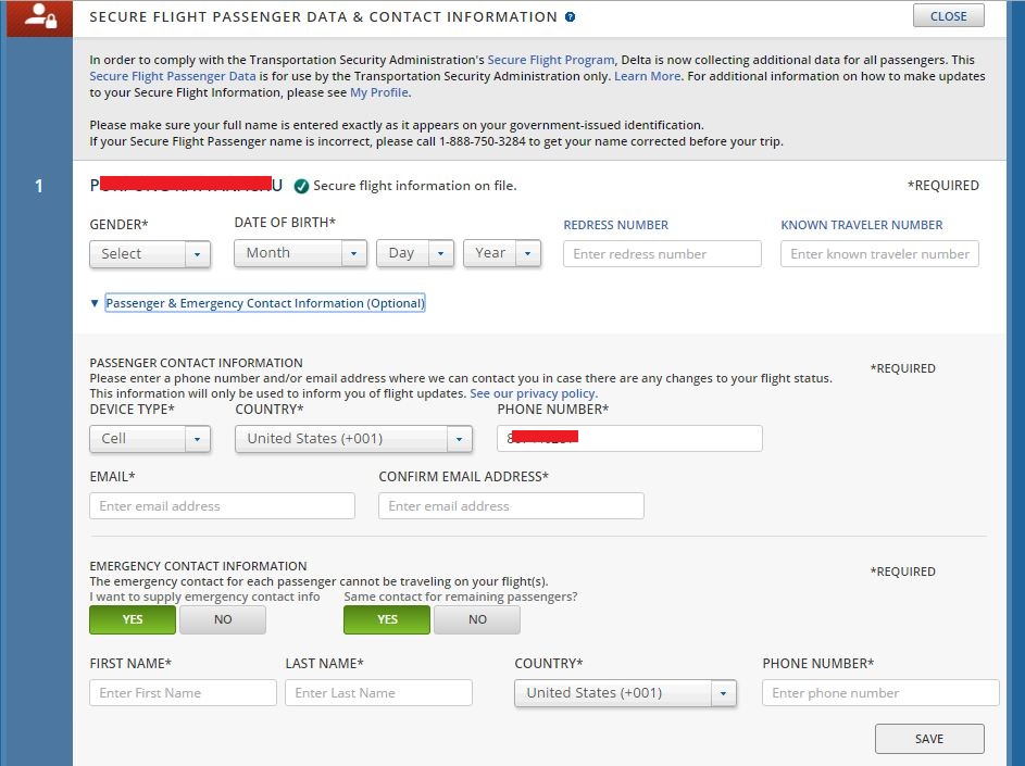 พอดีผมได้จองตั๋วของสายการบิน Delta airline เรียบร้อยแล้วครับ แต่พอเข้าไปที่ Manage my trip ก็สงสัยว่าทางสายการบินให้กรอกข้อมูลต่างๆเพิ่มเติมดังรูปครับ