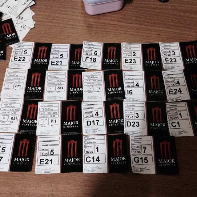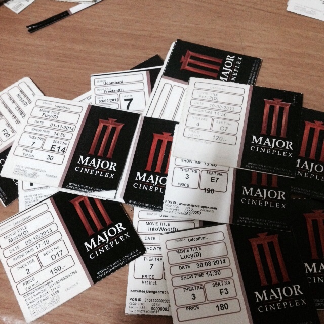 สวัสดีค่ะเราเป็นผู้หญิงคนนึงตัวสูงๆๆๆๆ555555 และเสพติดการดูหนังมากแต่ไม่มากเท่าไหร่ถ้าว่างก็จะไปดูตั้งแต่เราเลิกกับแฟนมาเราก็ไปดูหนังคนเดียวค่ะก็ไม่เหงานะคะหรือว่ามันเป็นอาการชินไปแล้ว(มั้ง)ตอนที่เราคบกันเราก็ไปดูคนเดียวอยู่บ่อยๆๆนะคะแบบไม่ค่อยได้เจอกันแต่นี่เลิกกันแล้วฉันต้องใช้เวลาให้คุ้มกับการดูหนังงงงอิอิส่วนตัวชอบดูการ์ตูนค่ะเพราะอายุก็เด็กๆๆวัยรุ่น ไม่ดูหนังผี ชอบหนังตลกค่ะ และหนังรัก ถ้าไปดูคนเดียวสำหรับคนกลัวผีอย่างฉันคงจะได้นอนหลับทั้งเรื่องหล่ะค่ะเพราะไม่มีคนค่อยให้ซบไงฉันเลยไม่เลือกที่จะดูหนังผีค่ะ55555555555555555555555555555555555ถ้าถามว่าทำไมไม่ชวนเพื่อน ก็เพื่อนฉันบางคนก็ดูแล้วบางคนก็ไม่ว่างติดธุระบลาๆๆๆๆ~เลยตัดสินใจมาคนเดียวสะเลยยค่ะ ดูหนังคนเดียวก็ประมาณ19เรื่องค่ะบางทีบัตรหายหลงทิ้งอยู่ในเครื่องซักผ้าบ้างงงงงงง._. หาได้เท่านี้แหละค่ะ5555555บางส่วนก็ไปดูกับเพื่อนบ้างค่ะแต่ไม่ค่อยบอกตามแต่จะนัดกันนัดทีก็ลมทีค่ะอย่านัดเลยจะดีกว่า@_@ ส่วนรูปนี้คือบัตรที่ไปดูกับเพื่อนค่ะเรายึดมาแล้วก็ยังมีบัตรเก่าๆๆที่เค้ายังไม่เปลี่ยนแบบบัตรค่ะเราก็เก็บไง้บางบัตรก็ลอกหายหมดไม่รู้ว่าเรื่องอะไรเป็นอะไรหมดแล้วค่ะ55555 แค่จะมาบอกว่าดูหนังคนเดียวก็สนุกดีเหมือนกันนะ.....