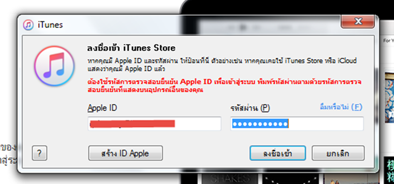 login applie id ไม่ได้ โปรดติดต่อฝ่ายสนับสนุน itune