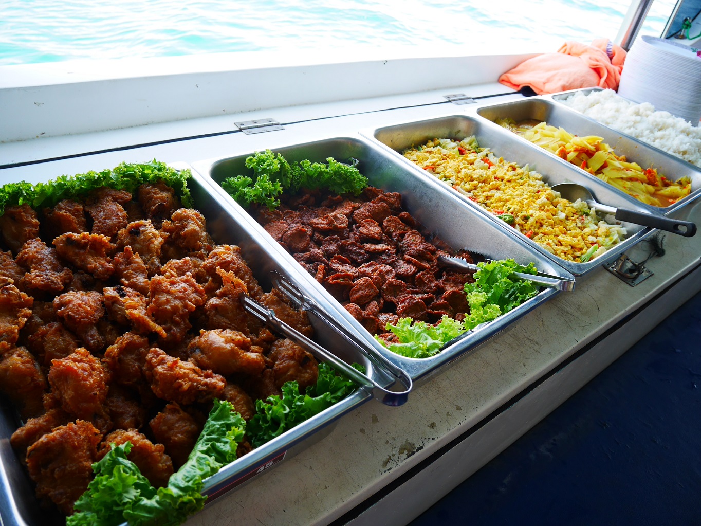 จิงๆเกาะที่ จขกท ชอบมากๆๆๆ เป็นปลื้มและอยากมามากที่สุดคือเกานี้น่ะ "เกาะลังกาจิว"่ มีคน review มาเยอะแล้ว กว่าจะได้ไปที่นี่ต้องรอเวลานานมาก ทั้งๆที่เป็นบ้านเกิดตัวเองน่ะเนี่ย ปะ เราไปดูความสวยงามกันเหอะ อยากโชว์มาก พูดเลยยยย 555+ แต่เดี๋ยวก่อนน่ะ เที่ยงแล้ว กินข้าวกันก่อน บุฟเฟ่ นะจ๊ะมือนี้ บอกเลยว่าเห็นหน้าตาธรรมดาแบบนี้ บอกเลยรสชาดไม่ธรรมดาเลยน่ะ