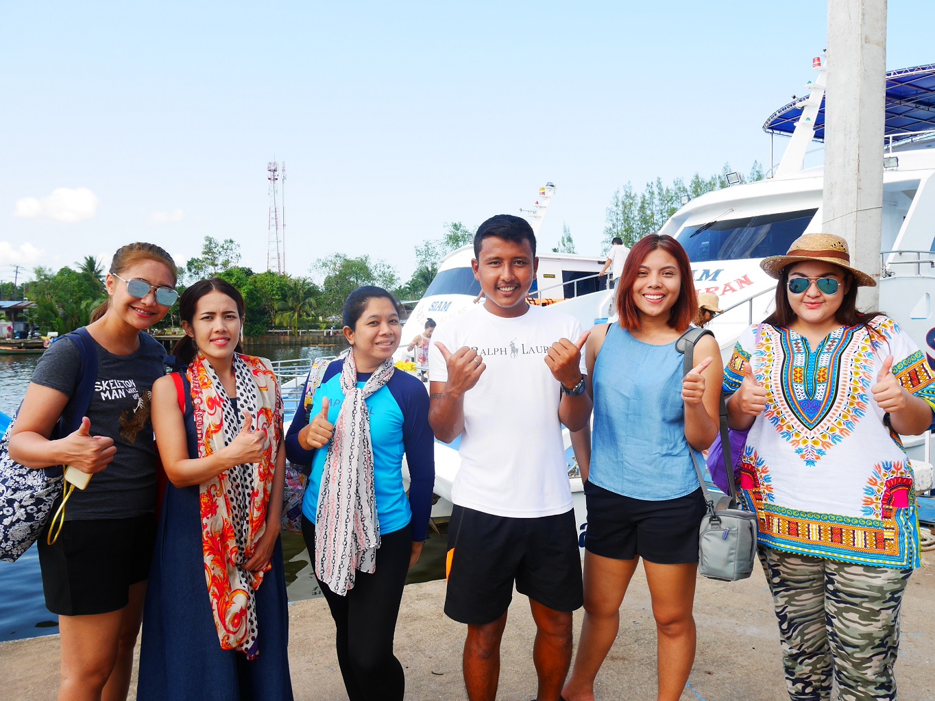 วันนี้ที่เราจะเดินทางอากาศไม่ค่อยเป็นใจเท่าไหร่ เนื่องจากคลื่นลมแรง จขกท เกือบไม่ได้ไปแล้ว ต้องออดอ้อนผู้มีอุปการะคุณให้ไปส่งที่ท่าเรือ เราได้นัดกับบริษัทเรือท่องเที่ยว (สยามคาตามารัน) จองทัวร์ได้นะจ๊ะ
