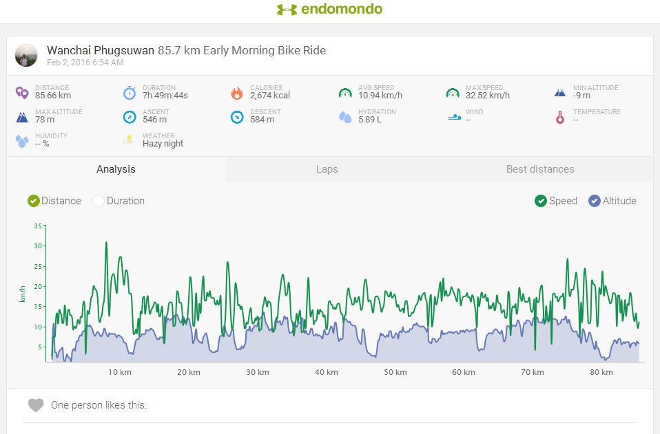 (Wanchai biked 85.66 kilometers with Endomondo Sports Tracker.