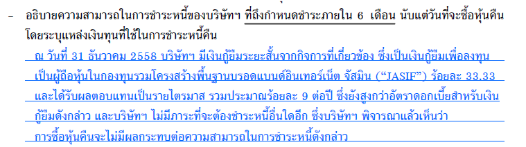 ความสามารถในการชำระหนี้ของบริษัทใน 6 เดือนข้างหน้า ทำไมชี้แจงข้อมูลไม่ครบละครับ ข้อเท็จจริงก็รู้กันอยู่ว่ามีภาระต้องจ่ายค่าประมูล 4G แล้วเช่นนี้ข้อมูลที่ชี้แจงมา มันใช่หรือครับ แล้วผู้ดูแลตลาดทุนคิดไม่ได้หรือทำอะไรกันอยู่
