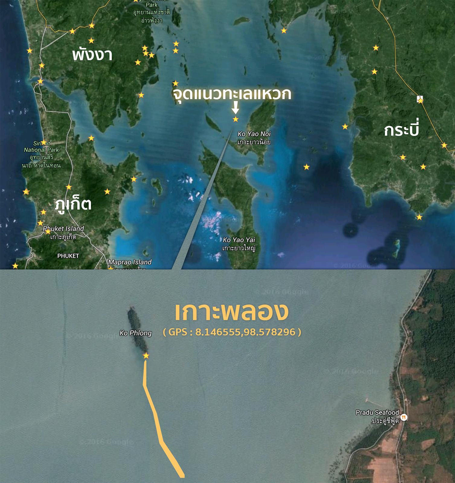 เมื่อดูจาก Google Map เราจะเห็นได้ว่าเกาะพลอง ตั้งอยู่กึ่งกลางของระหว่าง 3 จังหวัด (ภูเก็ต พังงา กระบี่)