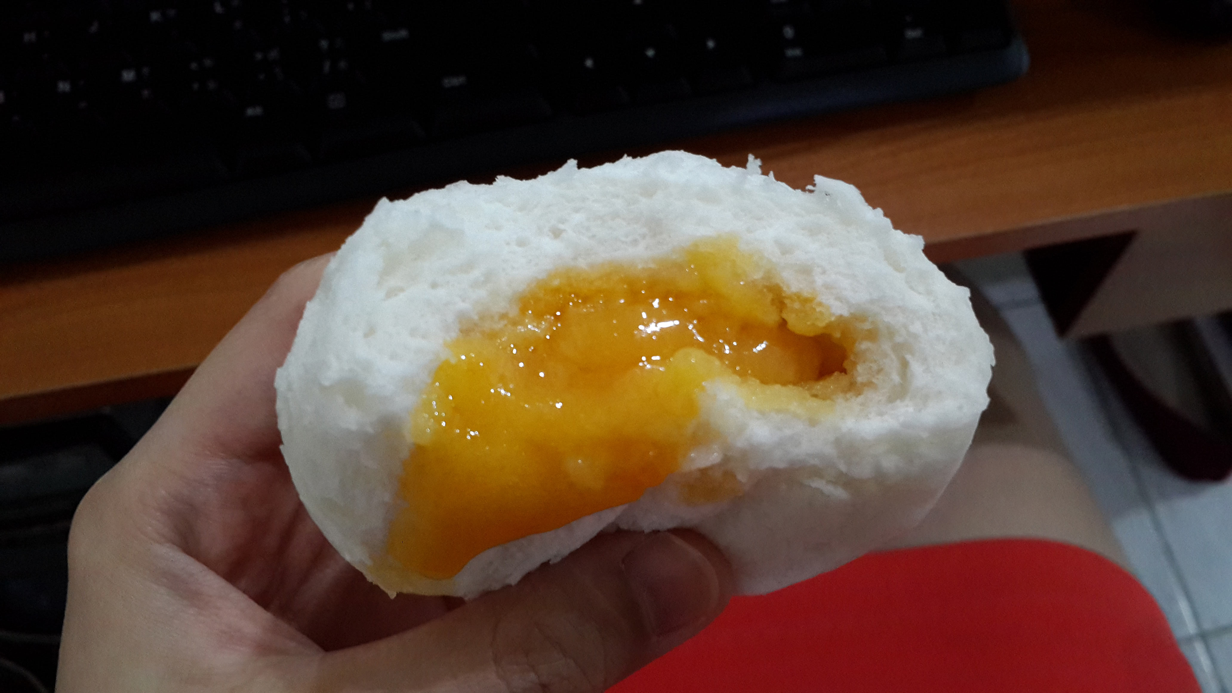 เรามาเริ่มที่ซาลาเปาไส้ครีมลาวาก่อนเลย ไส้ครีมลาวาคนนิยมที่สุดค่ะ ไส้เยอะจนทะลักเลยทีเดียว ซื้อมาฝากเพื่อนที่ทำงานกินกัน กินหกกันแทบทุกคนเลย แหะๆ