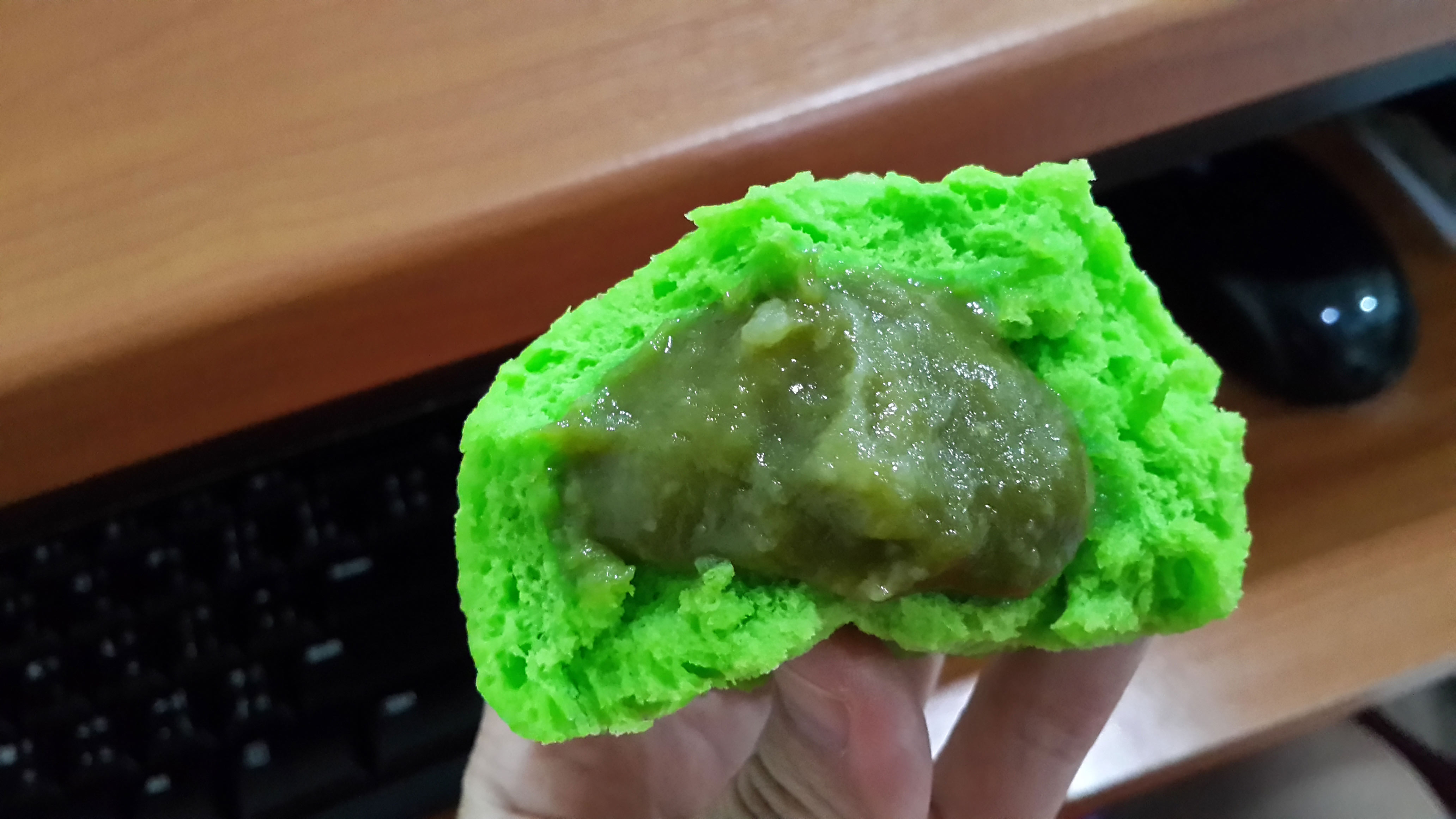 ลูกนี้เป็นซาลาเปาไส้ชาเขียวลาวา ของจริงสีไม่เขียวแปร๊ดเท่านี้ค่ะ ลูกนี้เราว่ารสชาติหวานไปหน่อยค่ะไม่ค่อยถูกปากเท่าไหร่