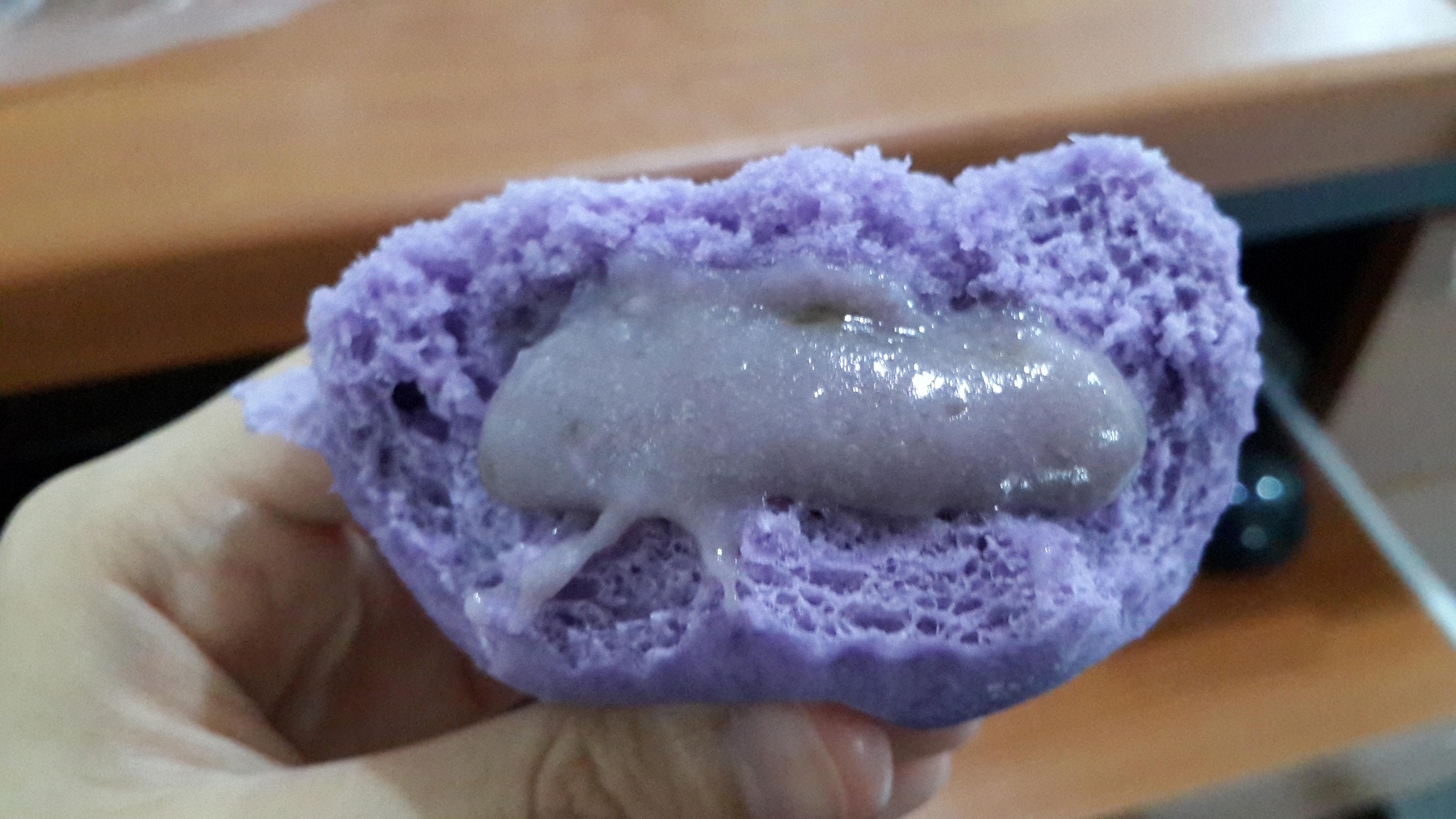 ลูกนี้ซาลาเปาไส้เผือกลาวาค่ะ ไส้เผือกลาวาค่อนข้างเหลวค่ะ ถ้าเทียบกะไส้อื่นๆ