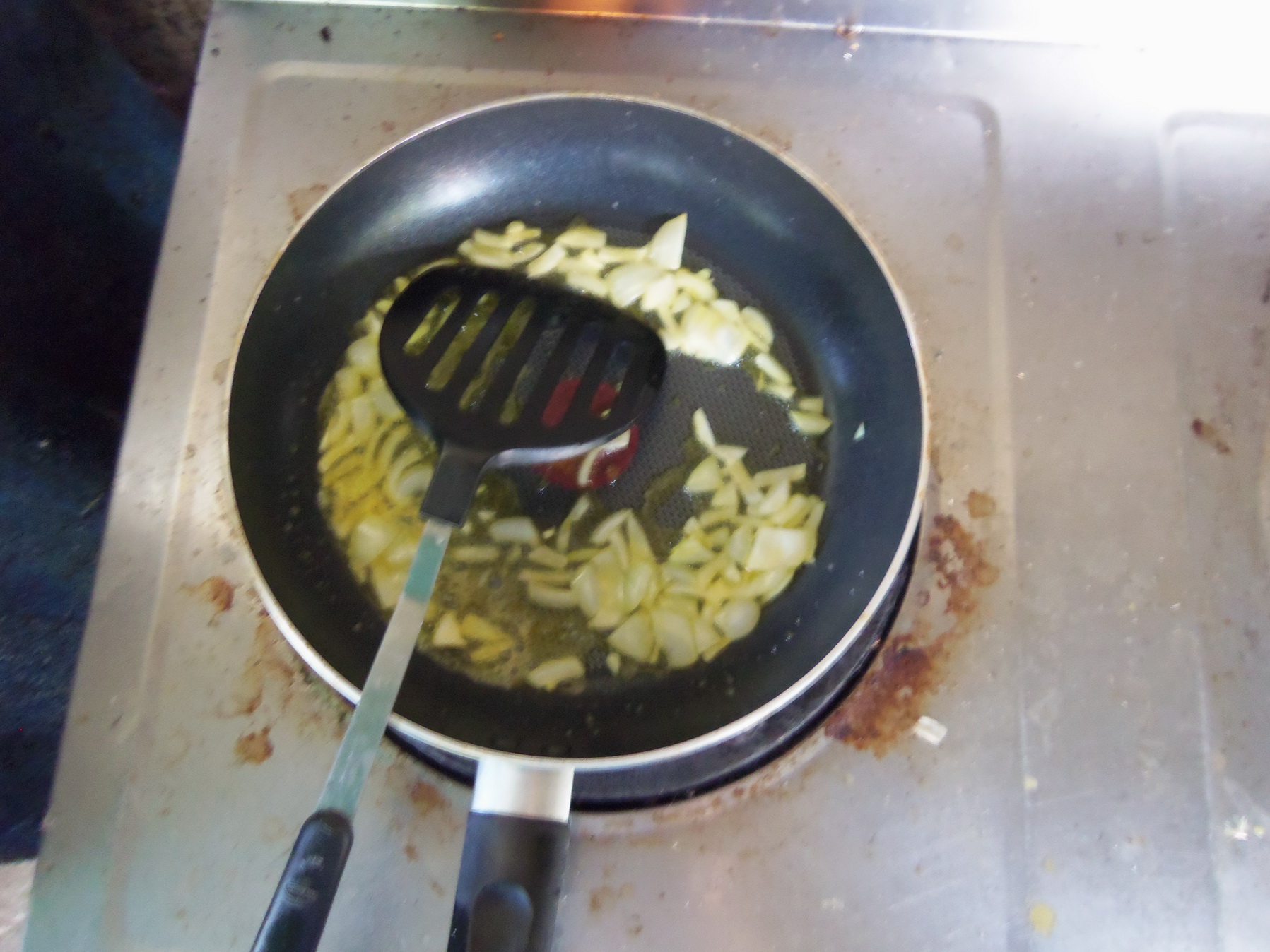 ตามด้วยหอมหัวใหญ่ที่หั่นไว้ ลงไปผัดให้นิ่ม