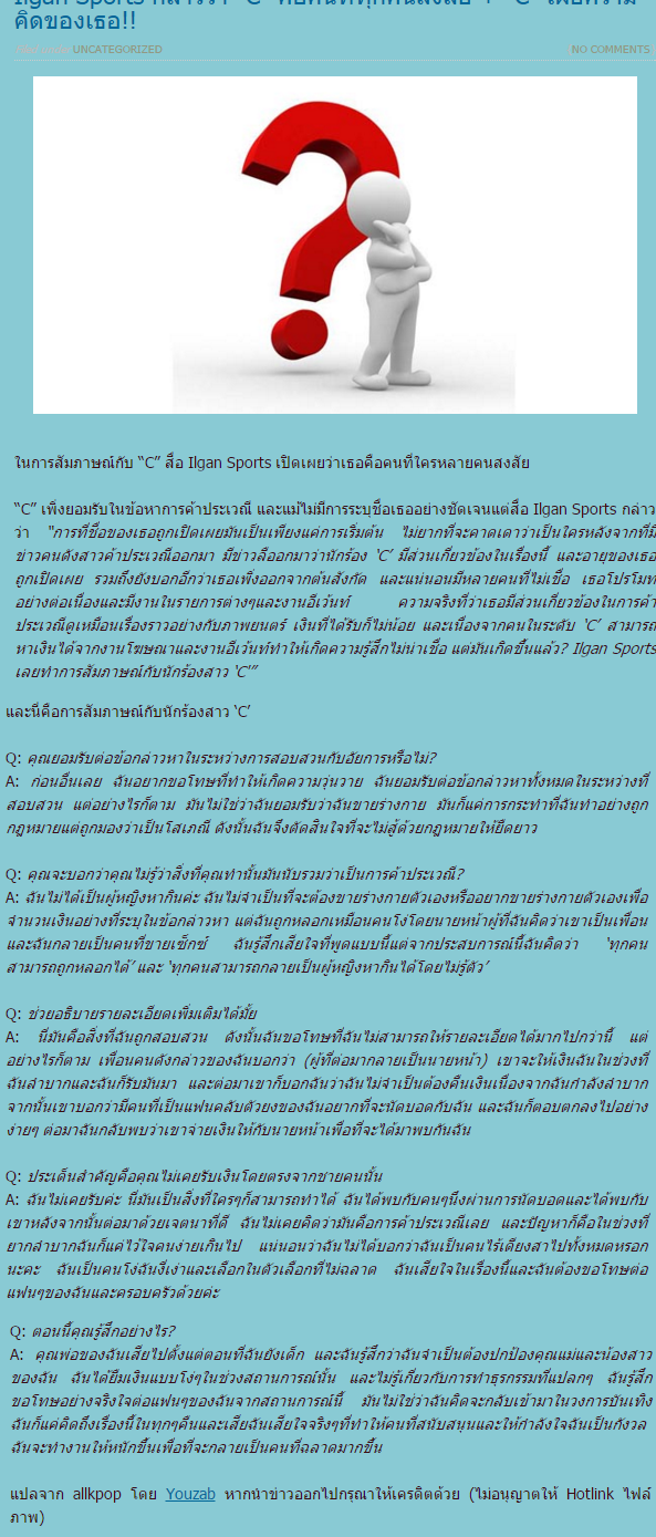 [K-POP]Ilgan Sports กล่าวว่า "C" คือคนที่ทุกคนสงสัย + "C" เผยความคิดของเธอ!!