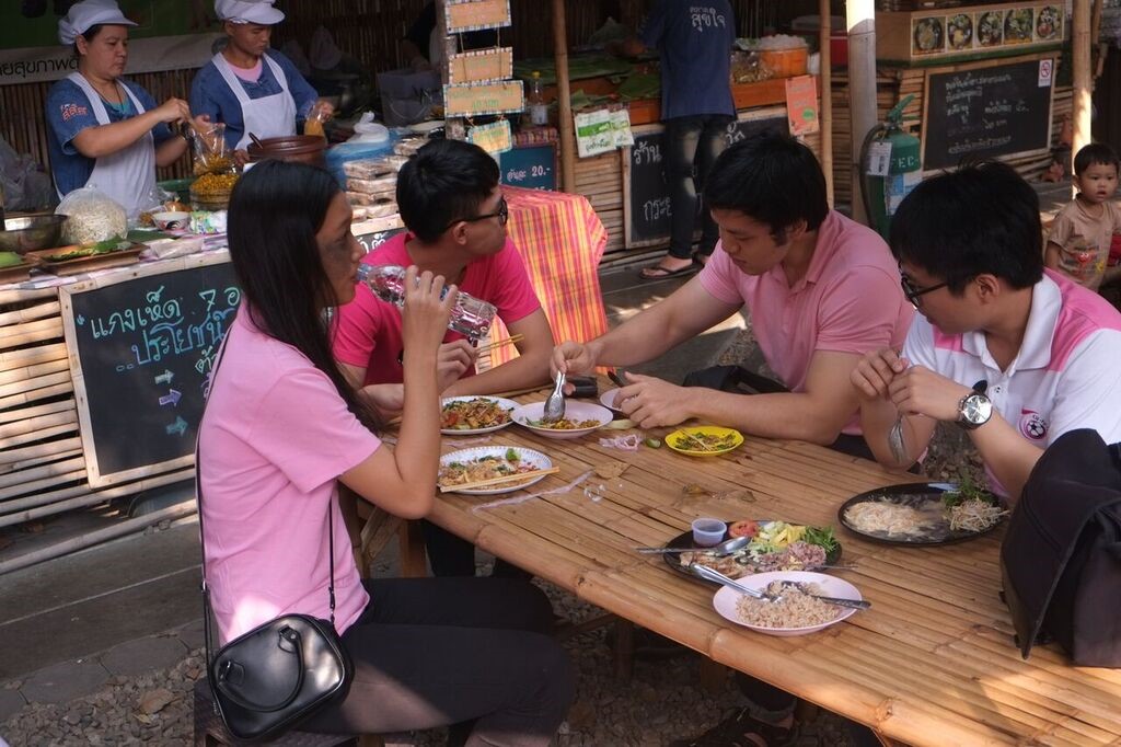 แต่ก่อนที่พวกเราจะเพิ่มพลังความรู้ให้สมอง เราต้องมาเติมพลังให้กับท้องของพวกเรากันก่อนนะคะ จขกท.ไม่รอช้า พอลงจากรถปั๊บ สายตาก็เหลือบไปเห็นตลาดเล็กๆ ที่มีชื่อว่า "ตลาดสุขใจ" แค่ชื่อก็ดูแฮปปี้แล้วใช่มั้ยล่า