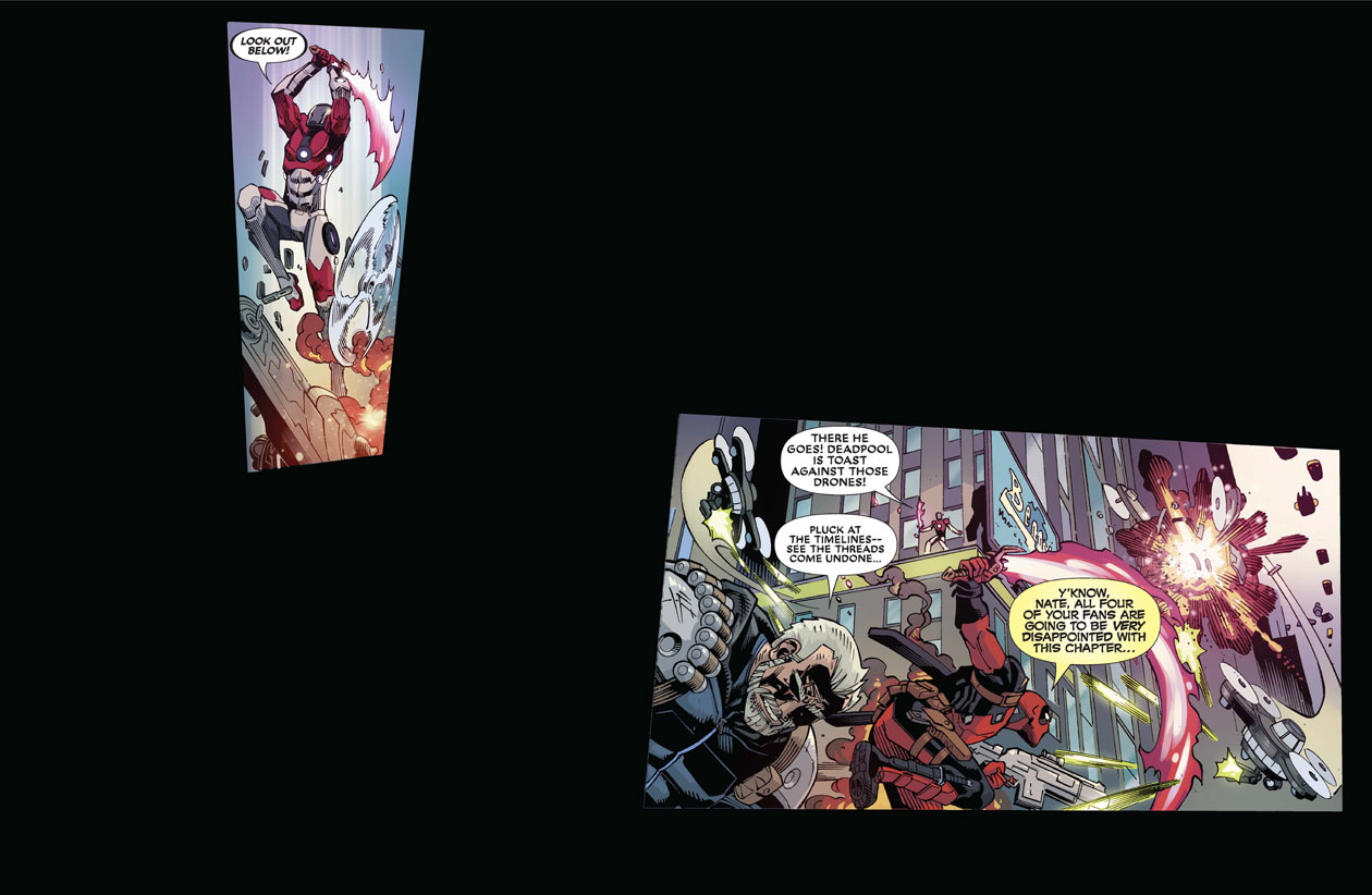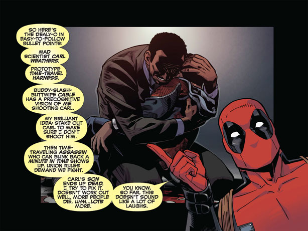 เดดพูล: เนท หมอนี่มันเพื่อนนายหรือเปล่าน่ะ พวกนักท่องเวลาอย่างพวกนายน่าจะรู้จักคนในวงการเดียวกันกันหมดอยู่แล้วใช่มั้ย?