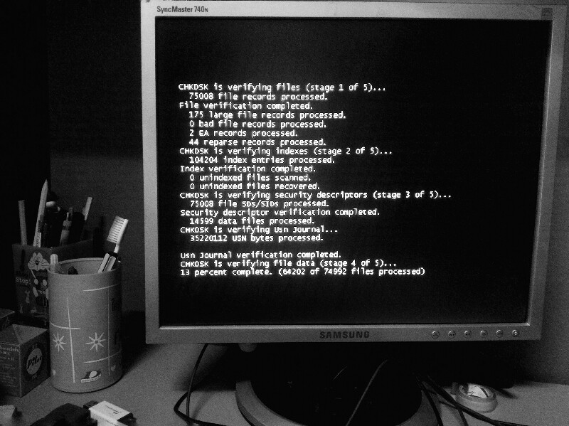 ก่อนหน้านี้ มีการเรียกใช้คำสั่ง Check Disk