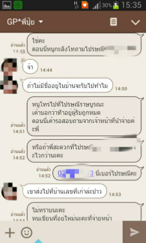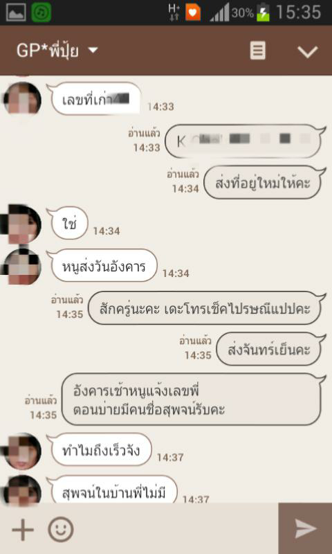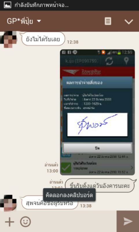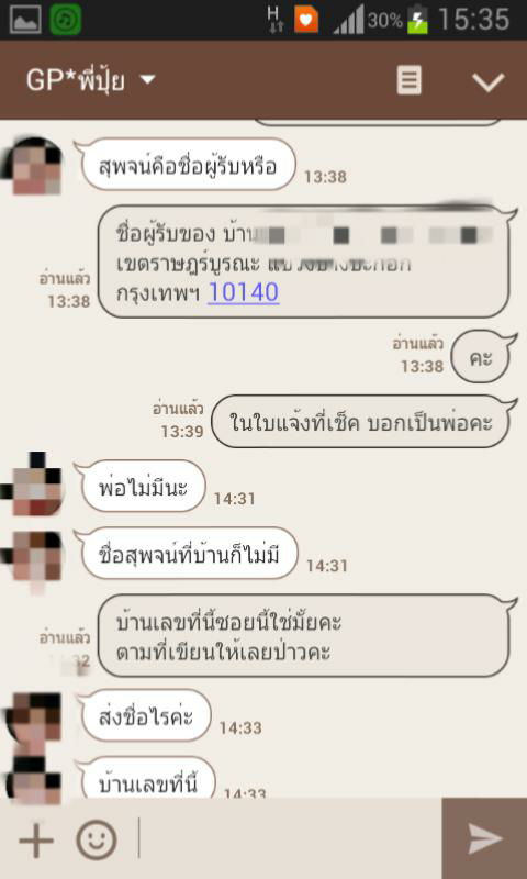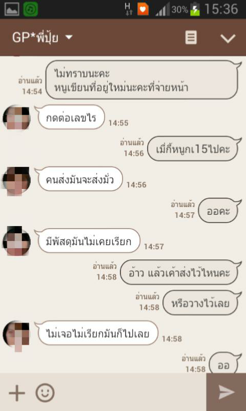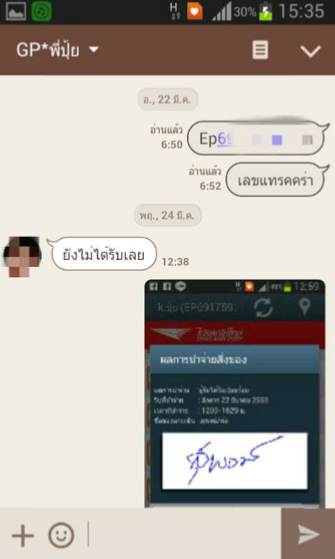 สวัสดีคะ ขอแนะนำตัวนะคะ จขกท เป็นแม่ค้าชายครีมและขนมออนไลน์ เมื่อวันจันทร์ ที่ 21 มีนา เราไปส่งของให้ลูกค้า และเราส่งของถึงปณ. ปลายทางในวันถัดมาเราก้ไม่เอะใจเมื่อมีคนรับของในบ่ายวันอังคาร ซึ้งเซ็นรับว่าพ่อ โอเคเรายอมรับผิดนะที่เราไม่ได้ทักไปหาลูกค้าในวันนั้นเลย พอมาถึงวันพฤหัสฯ ที่ 23 ลูกค้าทักมา ตามแชทเลยคะ