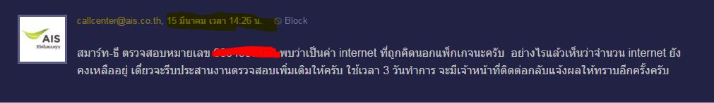อ้าว! งงสิ แพคก็เพิ่งใช้ ยอดเกิน Internet โผล่มาจากไหน AIS จ๋าเช็คให้เค้าหน่อยนะ
