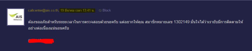 อืมมมมมม ตรวจสอบๆๆๆๆ ติดตามๆๆๆๆ มั่นใจๆๆๆๆ วันนี้ 1 อาทิตย์แล้วนะจ๊ะ AIS ยังตรวจไม่เสร็จอีกหรอจ๊ะ ประทับใจจริงๆ ^^