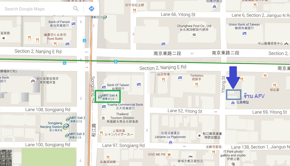 สามารถเดินทางไปที่ร้านโดย นั่ง MRT สายสีเขียว Songshan-Xindian Line ไปลงที่ MRT Songjiang Nanjing Station