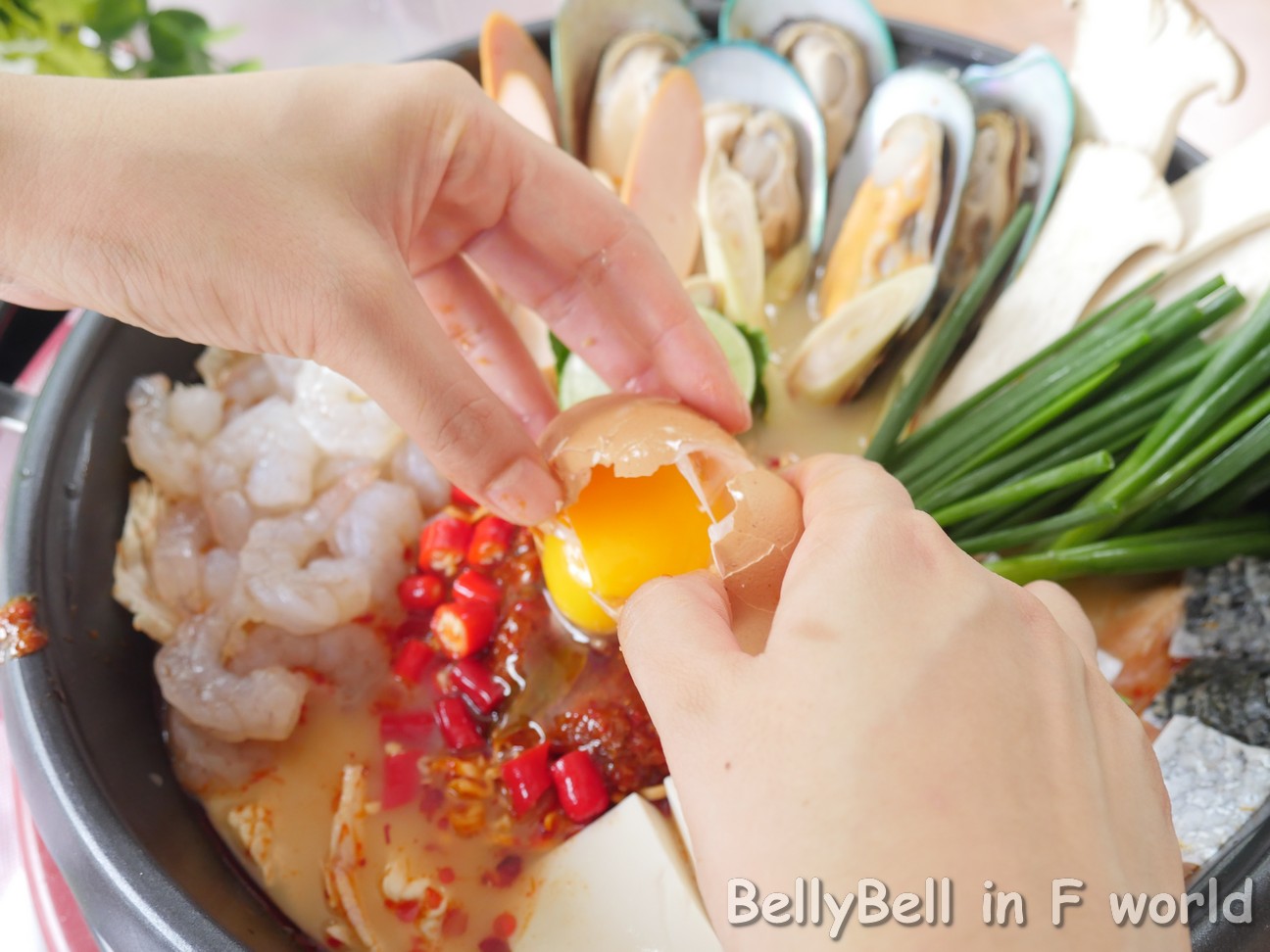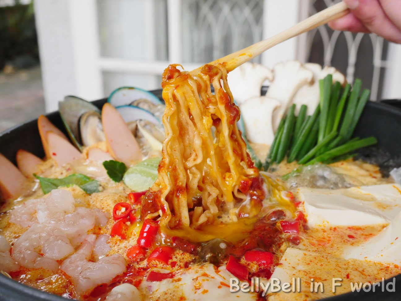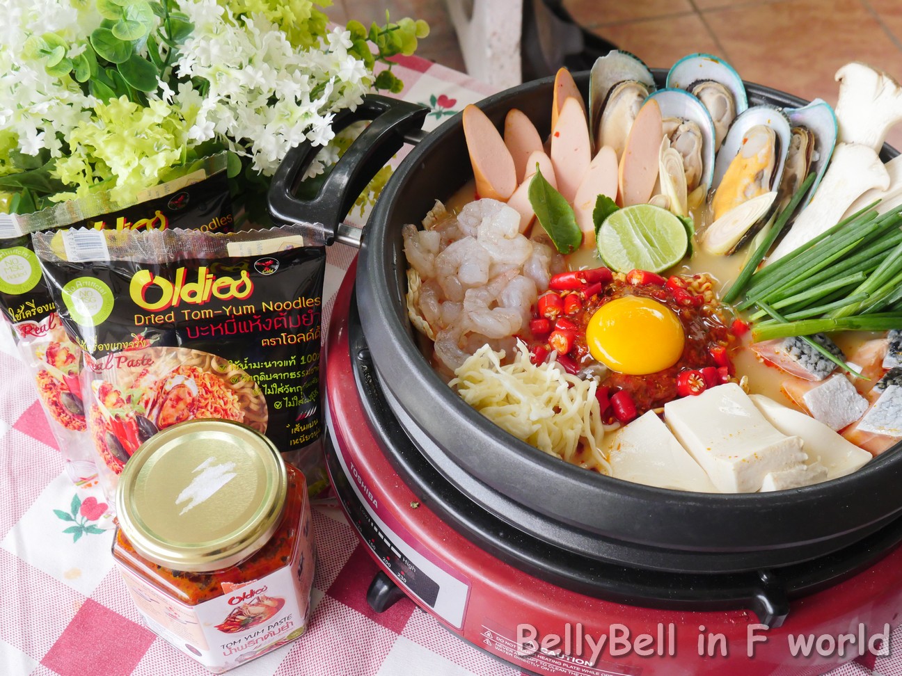 - โปรตีนของสด วันนี้เบลล์ทำเป็นตีมอาหารทะเล ก็เลยมี หอยแมลภู่, แซลมอน, กุ้งขาว, เต้าหู้ขาว, ไส้กรอก