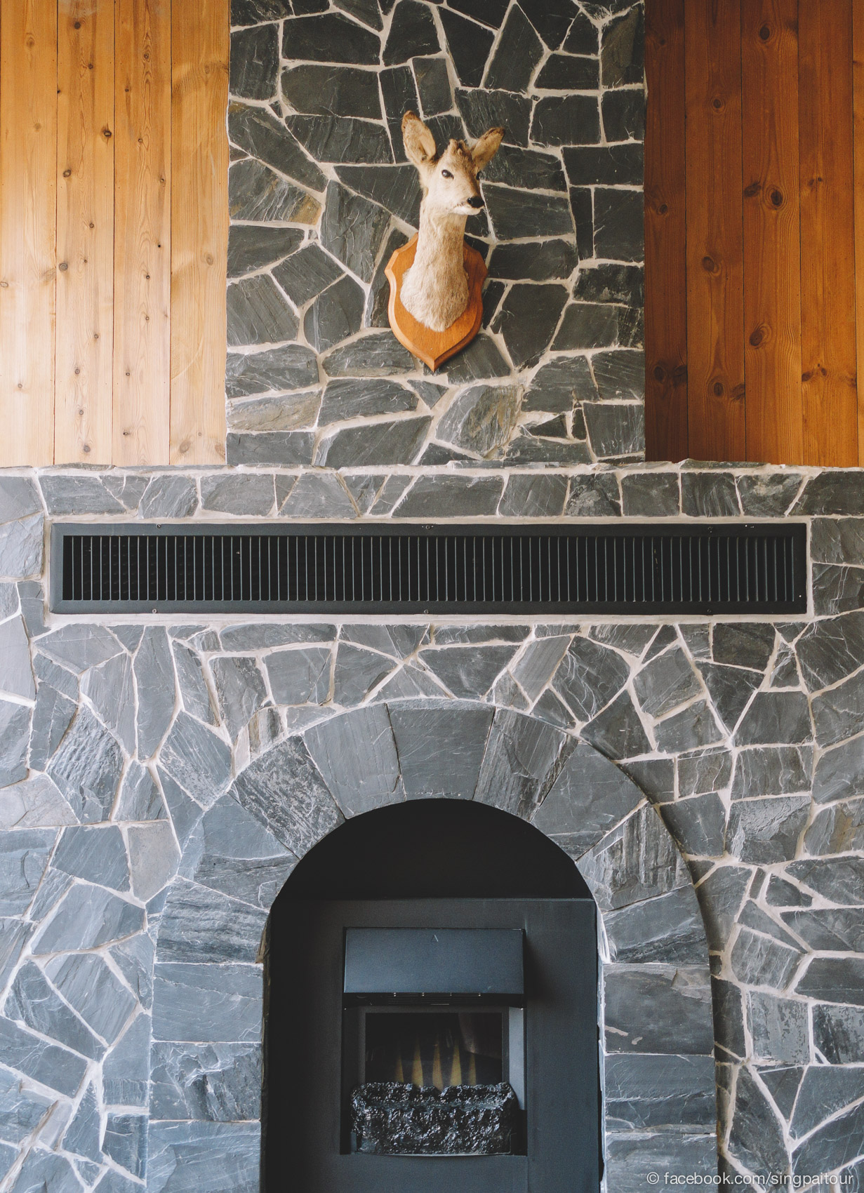• เดินขึ้นไปดูชั้นสองถึงกับว้าาาาาาวววว นี่เราอยู่ผิดประเทศหรือเปล่า เตาผิงหัวกวางตรงหน้าคืออะไร!?