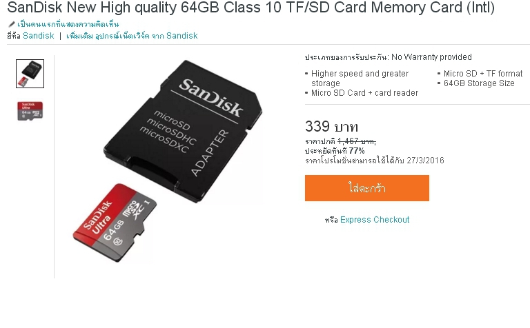 ทดลองสั่ง sd card จาก lazada เพราะเห็นว่าถูกดี (ตอนสั่งราคาแพงกว่านี้ประมาณ 100 ด้วยนะ)