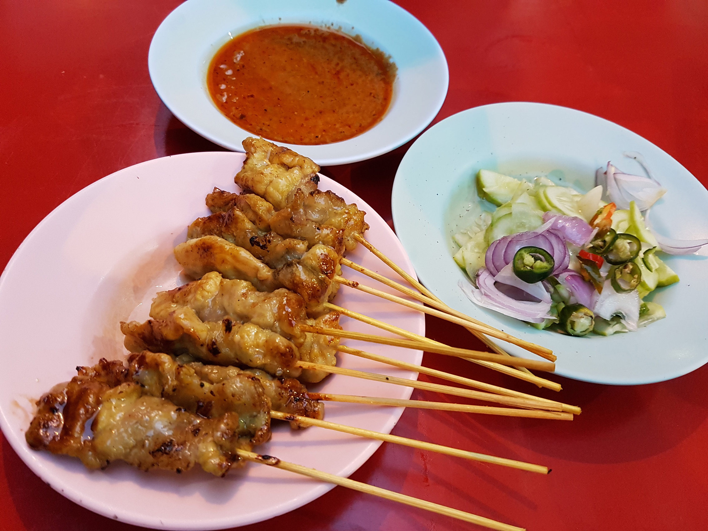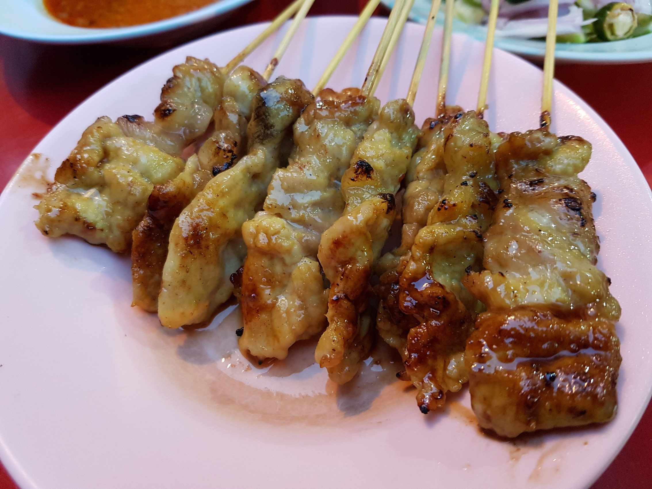 โชคดีวันนี้มาถึงร้านเร็วหน่อยประมาณ 18.30 ร้านยังไม่เริ่มขาย แต่ที่นั่งเริ่มจะเต็มแล้ว ได้ที่นั่งพอดี นั่งรอเล็กน้อย ระหว่างรอก็กิน หมูสะเต๊ะร้านข้างไปพลางๆ