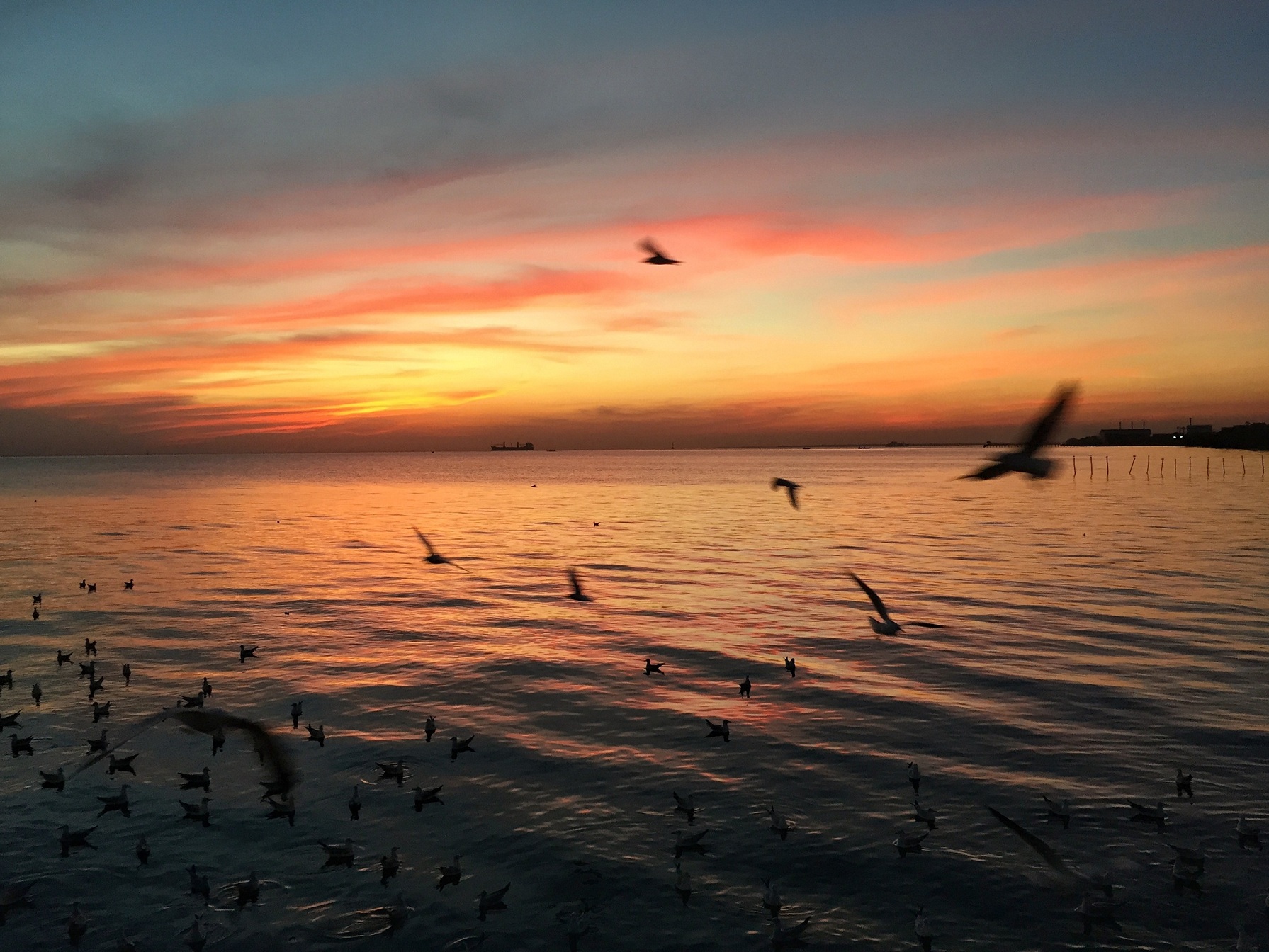 พระอาทิตย์ตก ที่ บางปู ครับ