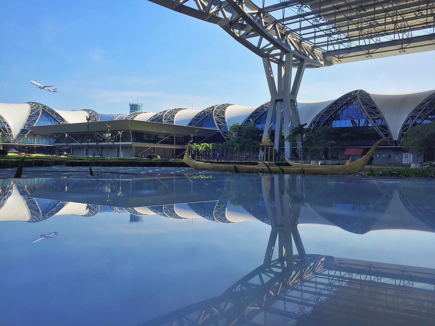 - ภาพจากสวนฝั่งตะวันออก สนามบินสุวรรณภูมิครับ วันนั้นฝนตกได้เงาสะท้อนพอดี