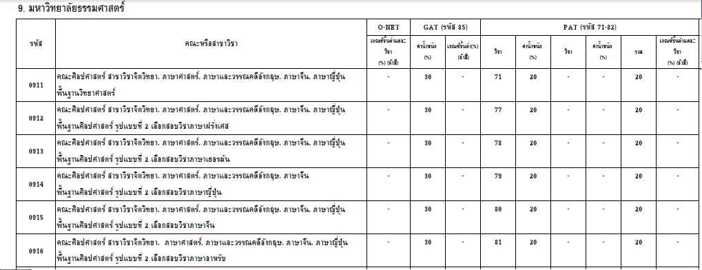 สอบถามเกี่ยวกับการแอดมิชชั่นเข้าคณะศิลปศาสตร์ ธรรมศาสตร์ เอกวรรณคดีอังกฤษครับ