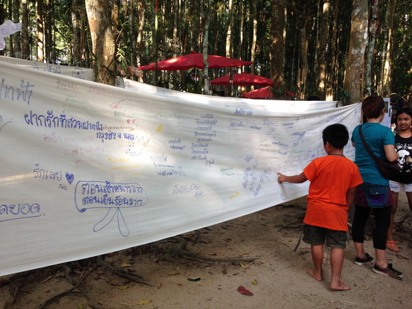 ภาพบรรยากาศในงานค่ะ ไปถึงงานก็จะเห็นเวทีกลางสวนไม้ตะเคียน ใครอยากนอนตรงไหนก็จับจองที่ทางในการกางเต้นท์ หรือผูกเปลได้ จขกท.เลือกจางเต้นท์ริมน้ำอีกฝั่งหนึ่งของงานค่ะ