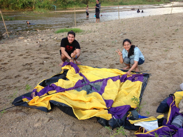 ใช้ความรู้สมัยเรียนลูกเสือ เนตรนารีมาใช้กางเต้นท์ หนึ่งชั่วโมงผ่านไป ปรากฏว่าไม่สำเร็จ --" คุณลุงที่เล่นน้ำอยู่ข้างๆถึงกับทนไม่ได้ ขึ้นจากน้ำมาช่วยสวนกางเต้นท์ และแล้ว...