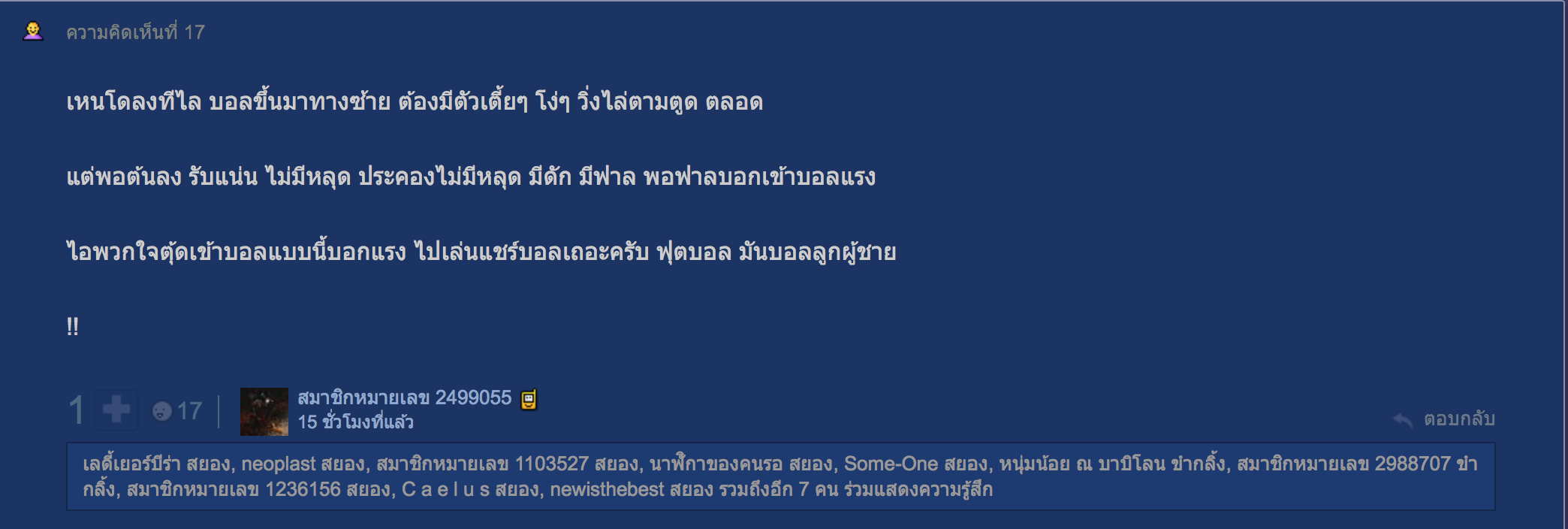 ไร้สิ่งเปรียบเทียบในเรื่องความเLว............ อัปเปหิไปจากบอลไทยเถอะนักเตะแบบนี้..........