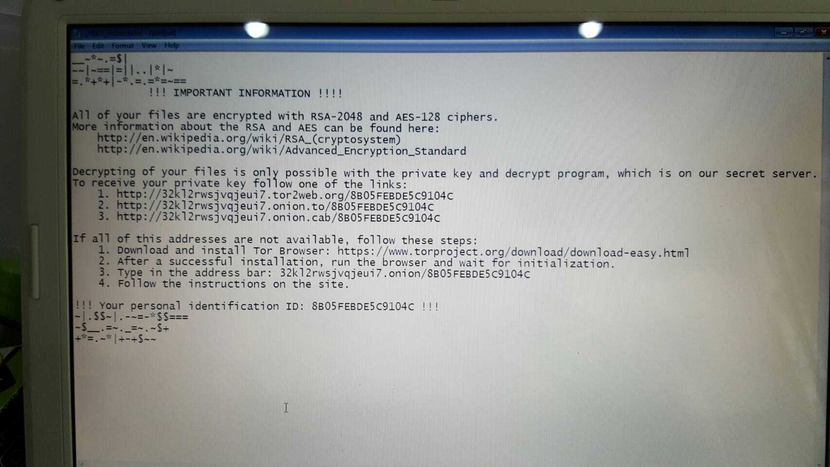 Notebook โดนไวรัส RSA-2048 แก้ยังไงคะ