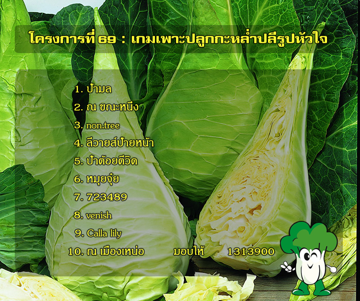 🎼*🎷*🎸*🎻*💃* ...ประกาศปิดคก.69 ปี 1 เกมเพาะปลูกกะหล่ำปลี รูปหัวใจ ... *💃*🎻*🎸*🎷