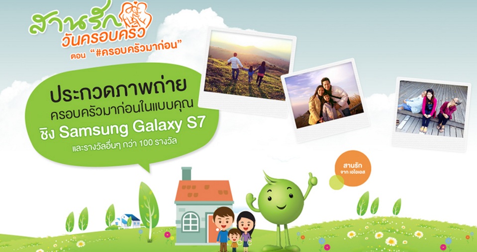 เอไอเอส โดย โครงการสานรัก สนับสนุนสถาบันครอบครัว ต้อนรับวันครอบครัวที่กำลังจะมาถึง โดยชวนทุกท่านร่วมสนุกกับกิจกรรมอบอุ่นในบรรยากาศที่เต็มไปด้วยความรัก สานรัก วันครอบครัว ตอน "#ครอบครัวมาก่อน" ด้วยวิธีร่วมสนุกง่ายๆ เพียงส่งภาพครอบครัว และเขียนข้อความ "ครอบครัวมาก่อน" พร้อมคำบรรยายสั้นๆ ครอบครัวมาก่อนในแบบคุณ โพสต์ลงใน www.sarnrakactivity.com