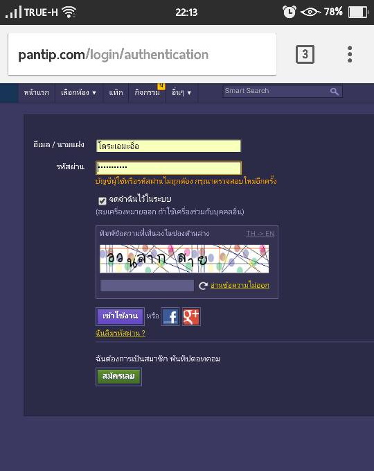 ทำไมลอกอินในคอมได้แต่อยู่ดีๆลอกอินในโทรศัพท์มือถือไม่ได้ครับ??