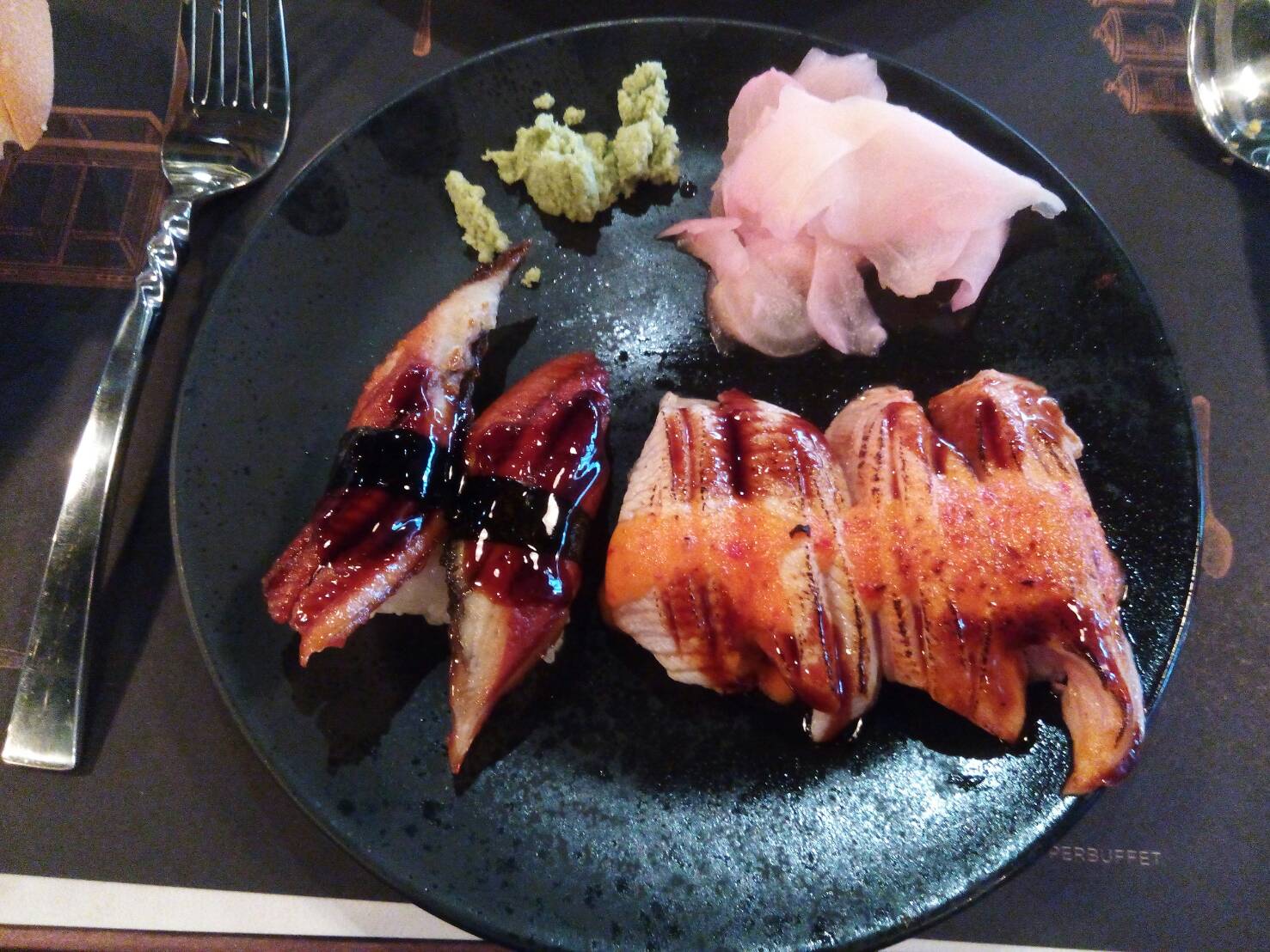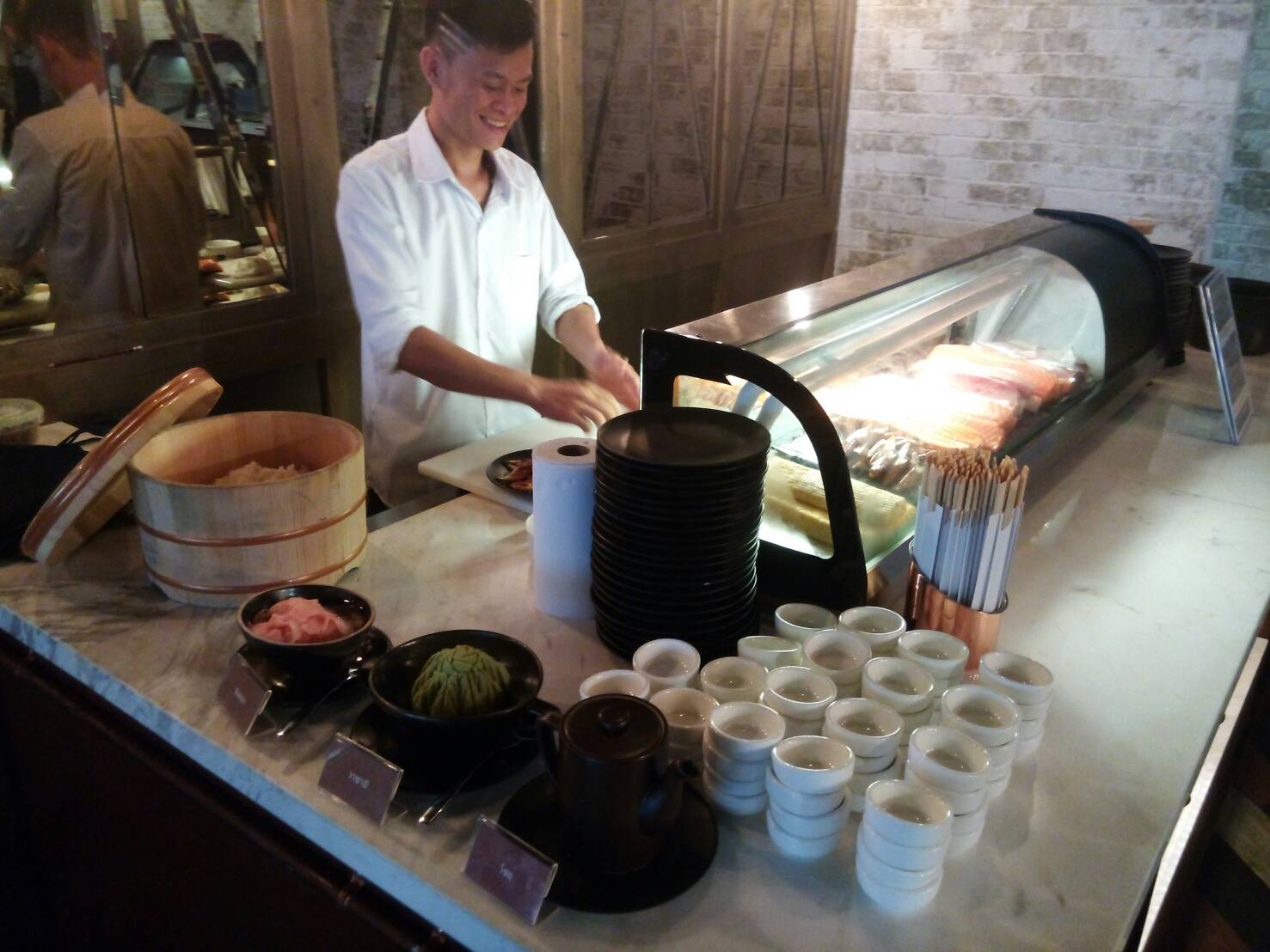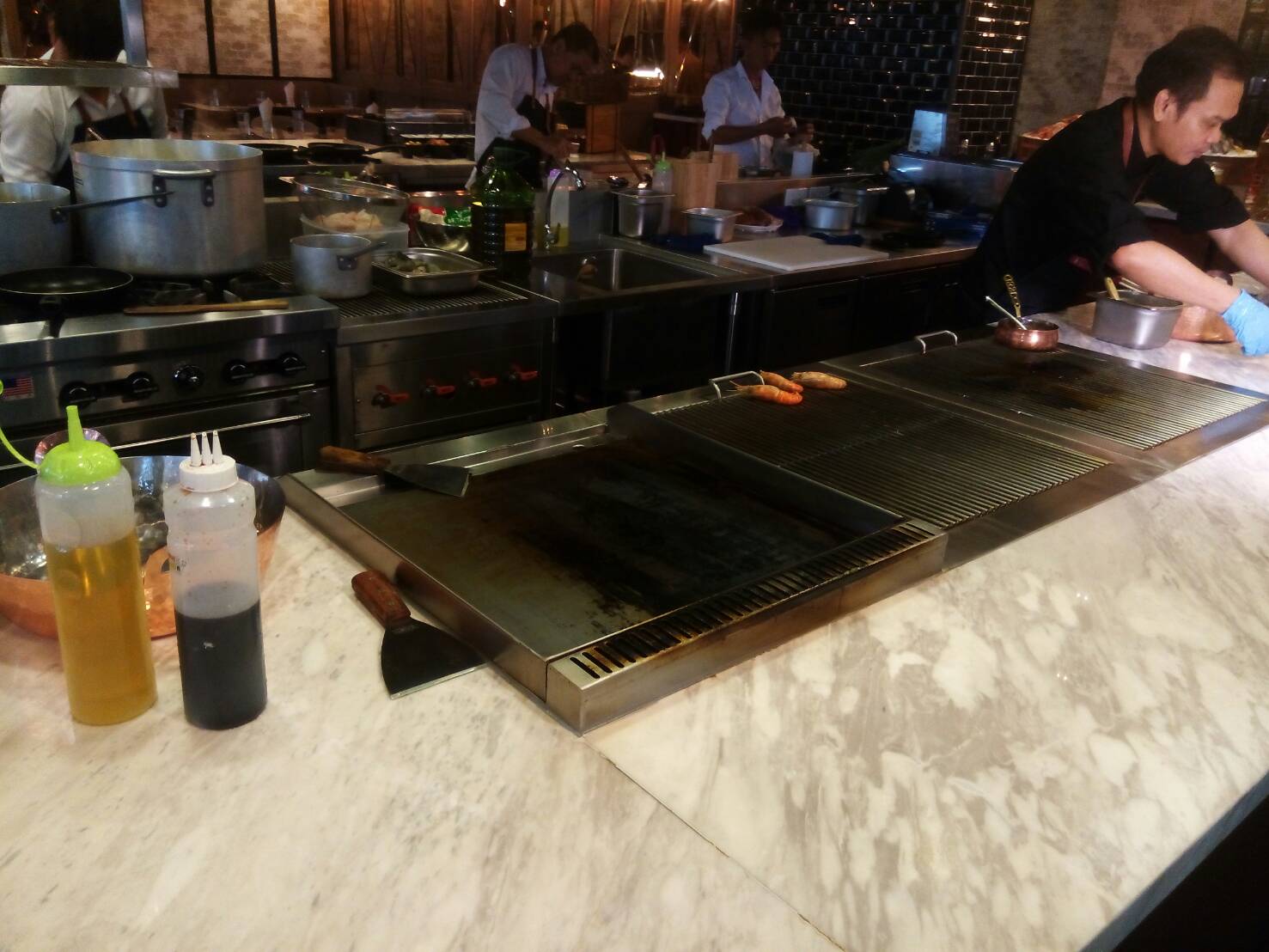 พอ 5 โมง ก็เข้าร้าน พนักงานต้อนรับดีมาก ทั้งผู้จัดการ(มั๊ง) เชฟ พนักงาน เฟรนด์ลี่สุดๆ ผู้จัดการเดินมาถามรสชาติ ต้องปรับปรุงอะไรไหม ทุกโต๊ะ(ุถ้าเข้าใจไม่ผิด เพราะรอบๆโต๊ะผมก็โดนถามทุกโต๊ะ) พนักงานรับออร์เดอร์ที่เคาน์เตอร์สเต๊ก กุ้งย่าง ก็บอกอะไรสุกไม่สุกบอกได้ ถ้ากุ้งไม่สุกก็เอากลับมาให้ย่างเพิ่มได้ เชฟอาหารญี่ปุ่นยิ้มตลอด ใครเดินผ่านก็ยิ้ม(ดูใจดี)ให้ทุกคน