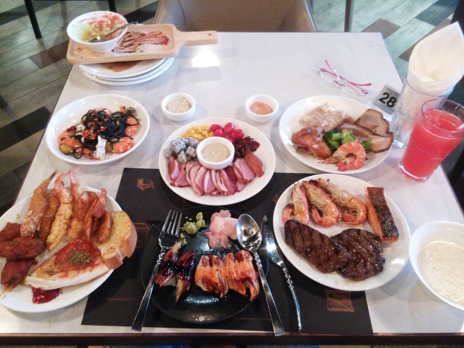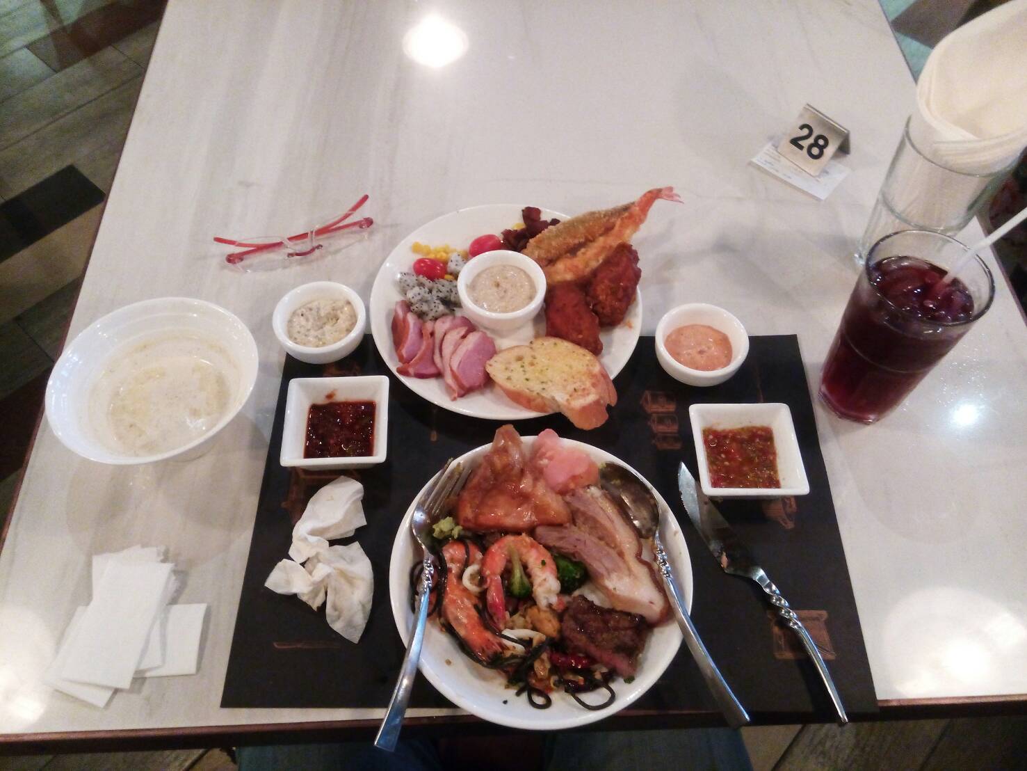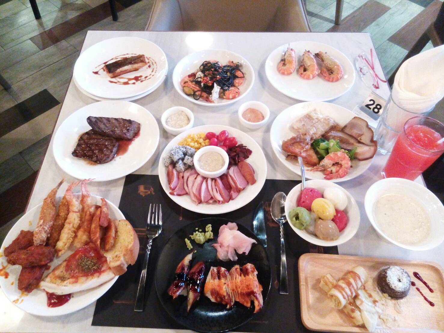 อาหารมีหลากหลาย มีโซนทำสดหลายโซน สเต๊ก สปาฯ ก๋วยเตี๋ยว อาหารญี่ปุ่น