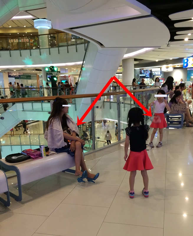 คือ คุณผู้หญิง (คาดว่าเป็นคุณแม่) นั่งรออะไรซักอย่าง แต่ปล่อยให้ลูก 2 คนตีแบตในห้าง ต่อให้หลบเข้าข้างทางแล้ว แต่ไม่คิดเหรอว่า ลูกแบต ไม้แบตจะไปโดนคนอื่นที่มาเดินห้าง