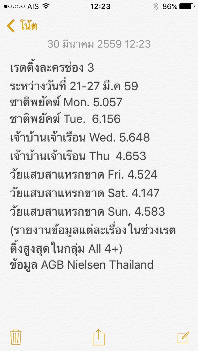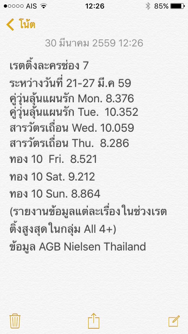 เรตติ้งละครช่อง 3 ช่อง 7 วันที่ 21 - 27 มีนาคม