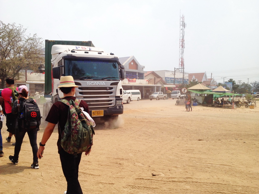 ช่วงที่ไปเค้ากำลังมีการก่อสร้าง ฝุ่นควันนี่สุดยอดเลย ต้องรีบเดินจ้ำ ๆๆๆ เพื่อจะไปยังอาคารที่ทำเอกสารของ ตม.ลาว หรือด่านวังเต่านั่นเอง ขาเข้าโดนเรียกไปคนละ 100 บาท....จากจุดนี้เราก็หารถทันทีเพื่อจะเหมาไปเที่ยวน้ำตก และวัดพูสะเหลา สรุปเราได้รถ Avanza ในราคา 3,000 บาท รวมน้ำมันเรียบร้อย ซึ่งเหมาะสำหรับพวกเรา 6 คนพอดีเลย...คนขับรถเราชื่อพี่แหล่ นิสัยดีเลยค่ะ เราขอให้พี่แหล่ไปส่งเราเข้าโรงแรมก่อน ถนนเข้าเมืองที่เราเห็นดูแล้วเหมือนเราได้ย้อนกลับไปในอดีตของไทยหลายสิบปีก่อน..นั่งมองวิวตามทาง ความแห้งแล้งมีอยู่ทุกที่..วัวควายของชาวบ้านออกหากินตามทุ่งหญ้า วิถีชีวิตแบบชาวบ้านที่เราแทบจะไม่ได้สัมผัสกับมันแล้ว